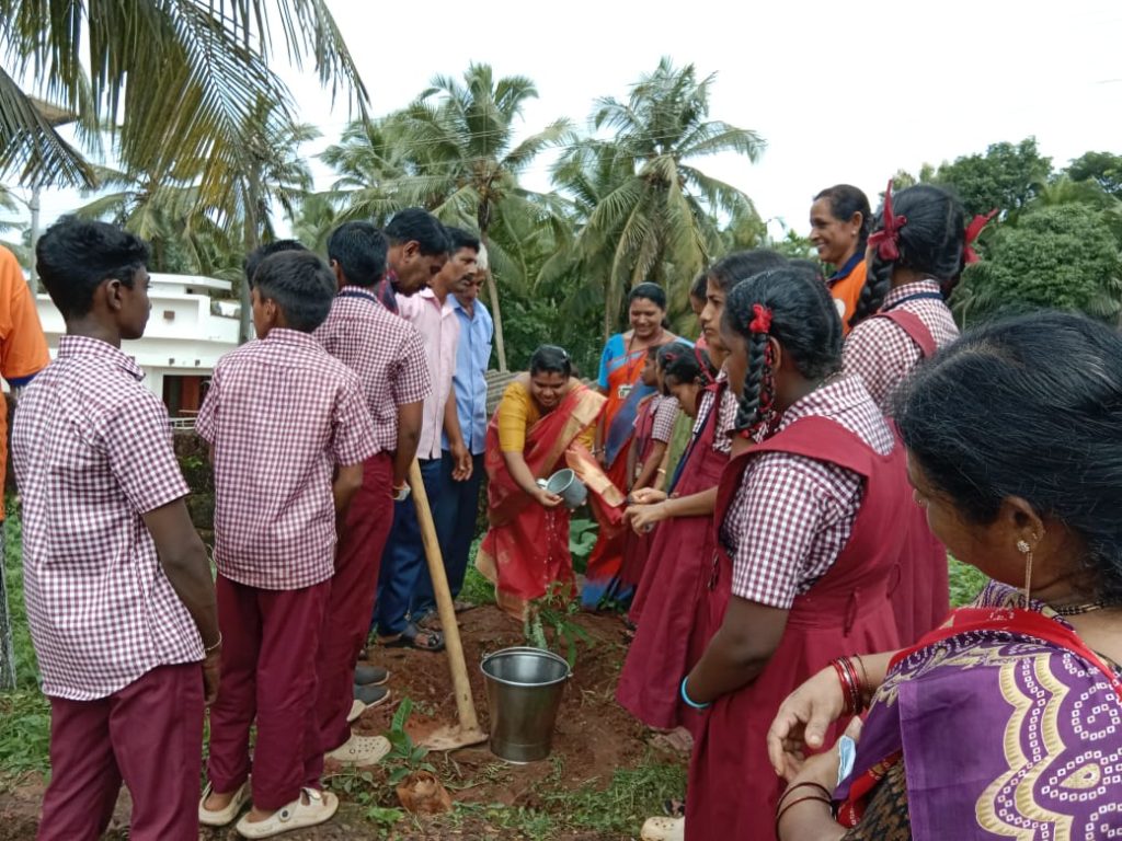 ಶಾಲಾ ಆವರಣದಲ್ಲಿ ಸಸಿಗಳನ್ನು ನೆಟ್ಟು ಮಕ್ಕಳಿಗೆ ಅತಿಥಿಗಳು ಸಸಿಗಳನ್ನು ವಿತರಿಸಿದರು.