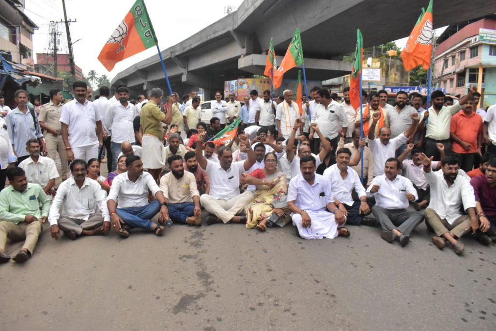 ಪೆಟ್ರೋಲ್ ಡಿಸೇಲ್ ಬೆಲೆಯೇರಿಕೆ ವಿರೋಧಿಸಿ ಬಿಜೆಪಿ ಬಂಟ್ವಾಳ ಘಟಕದ ವತಿಯಿಂದ ಶಾಸಕ ರಾಜೇಶ್ ನಾಯ್ಕ್ ಉಳಿಪ್ಪಾಡಿ ನೇತೃತ್ವದಲ್ಲಿ ಗುರುವಾರ ಬಿ.ಸಿ.ರೋಡಿನಲ್ಲಿ ಪ್ರತಿಭಟನೆ, ಹೆದ್ದಾರಿ ತಡೆ ನಡೆಯಿತು.