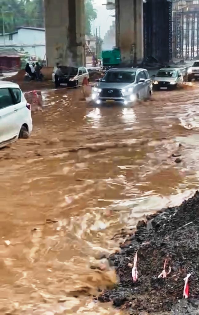 ಭಾನುವಾರ ಮಧ್ಯಾಹ್ನದ ಬಳಿಕ ಬಂಟ್ವಾಳದ ಹಲವೆಡೆ ಭಾರಿ ಮಳೆಯಾಗಿದ್ದು, ಕಲ್ಲಡ್ಕದಲ್ಲಂತೂ ಕಾಮಗಾರಿ ನಡೆಯುವ ಪ್ರದೇಶದಲ್ಲಿ ಹೆದ್ದಾರಿ ಅಕ್ಷರಶಃ ಹೊಳೆಯಂತಾಯಿತು. ಯಾವುದು ಗುಂಡಿ, ಯಾವುದು ರಸ್ತೆ ಎಂದು ಗುರುತೇ ಸಿಗದಂತೆ ಫ್ಲೈಓವರ್ ಕಾಮಗಾರಿ ನಡೆಯುವ ಪ್ರದೇಶಗಳ ಸಮೀಪವೆಲ್ಲಾ ನದಿಯಂತೆ ನೀರು ಹರಿಯಿತು. ಇದರ ವಿಡಿಯೋಗಳೂ ಸಾಮಾಜಿಕ ಜಾಲತಾಣದಲ್ಲಿ ವೈರಲ್ ಆದವು.ಯಾಕೆಹೀಗಾಯಿತು?-ಮುಂದೆಓದಿರಿ