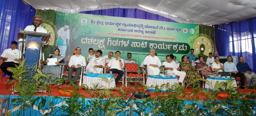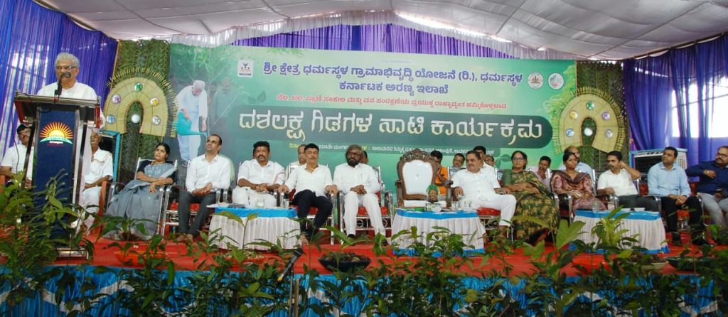 ಅಧ್ಯಕ್ಷತೆ ವಹಿಸಿದ್ದ ಧರ್ಮಸ್ಥಳದ ಧರ್ಮಾಧಿಕಾರಿ ಡಾ, ಡಿ.ವೀರೇಂದ್ರ ಹೆಗ್ಗಡೆ ಮಾತನಾಡಿ, ಗ್ರಾಮಾಭಿವೃದ್ಧಿ ಯೋಜನೆ ಮೂಲಕ ಈಗಾಗಲೇ ಲಕ್ಷಾಂತರ ಗಿಡಗಳ ನಾಟಿ ನಡೆದಿದ್ದು, ಉತ್ತರ ಕರ್ನಾಟಕ ಭಾಗದಲ್ಲಿ ಗೇರು ಬೀಜ ಗಿಡಗಳನ್ನೂ ನೆಟ್ಟಿದ್ದೇವೆ. ಮುಂದಿನ ಜನಾಂಗಕ್ಕೆ ಉಪಕಾರವಾಗುವಂತೆ ಫಲ ಬರುವ ಗಿಡಗಳ ನಾಟಿ ಮಾಡಬೇಕು, ಈ ಭೂಮಿ ನಮ್ಮ ಮೊಮ್ಮಕ್ಕಳ ಆಸ್ತಿ ಎಂಬುದನ್ನು ನಾವು ನೆನಪಿಸಿಕೊಳ್ಳಬೇಕು ಎಂದರು.
