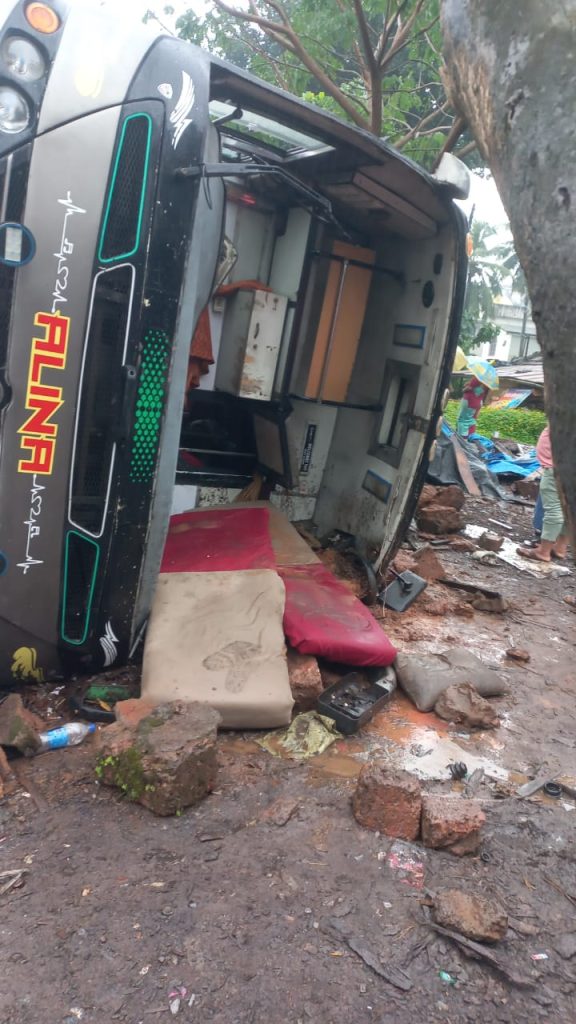 ಬೆಂಗಳೂರು ಕಡೆಯಿಂದ ಮಂಗಳೂರು ಕಡೆಗೆ ಬರುತ್ತಿದ್ದ ಖಾಸಗಿ ಬಸ್ ಫರಂಗಿಪೇಟೆ ಹತ್ತನೇ ಮೈಲಿ ಕಲ್ಲು ಎಂಬಲ್ಲಿ ಪಲ್ಟಿಯಾಗಿದೆ. ಘಟನೆಗೆ ಸ್ಪಷ್ಟವಾದ ಕಾರಣ ಇನ್ನೂ ಕೂಡ ತಿಳಿದು ಬಂದಿಲ್ಲ, ಯಾವುದೇ ದೊಡ್ಡ ತಿರುವುಗಳಿಲ್ಲದ ಈ ಜಾಗದಲ್ಲಿ ಬಸ್ ಹೇಗೆ ಪಲ್ಟಿಯಾಯಿತು ಎಂಬ ಕುರಿತು ಸ್ಥಳೀಯರು ಮಾತನಾಡಿಕೊಳ್ಳುತ್ತಿದ್ದಾರೆ. ಘಟನೆಯಲ್ಲಿ ಬಸ್ ಪ್ರಯಾಣಿಕರನೇಕರು ಗಾಯಗೊಂಡಿದ್ದಾರೆ. ಕೂಡಲೇ ಸ್ಥಳೀಯರು ಜಮಾಯಿಸಿ, ಮಂಗಳೂರಿಗೆ ತೆರಳುವ ವಾಹನಗಳಲ್ಲಿ ಗಾಯಾಳುಗಳನ್ನು ಕಳುಹಿಸಿದರು. ಇದರಿಂದ ಕೂಡಲೇ ಅವರಿಗೆ ವೈದ್ಯಕೀಯ ಚಿಕಿತ್ಸೆ ದೊರಕಲು ಸಹಾಯವಾಯಿತು. ಸ್ಥಳಕ್ಕೆ ಬಂಟ್ವಾಳ ಟ್ರಾಫಿಕ್ ಪೋಲೀಸ್ ಎಸ್.ಐ. ಸುತೇಶ್ ಮತ್ತವರ ಸಿಬಂದಿ ಆಗಮಿಸಿ, ತನಿಖೆ ನಡೆಸುತ್ತಿದ್ದಾರೆ.
