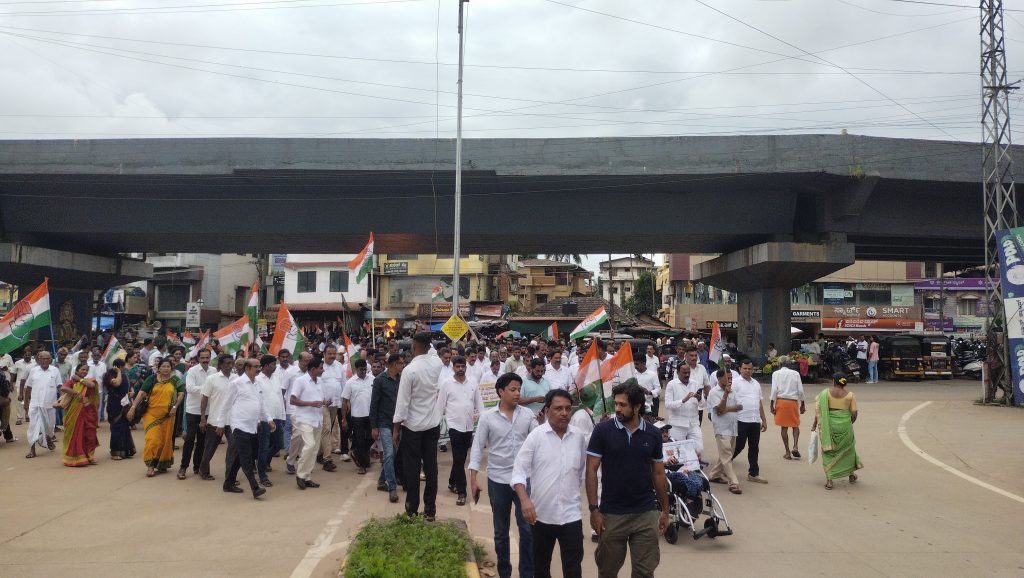 ಕಾಂಗ್ರೆಸ್ ಕಾರ್ಯಕರ್ತರು ಪ್ರತಿಭಟನಾ ಮೆರವಣಿಗೆ