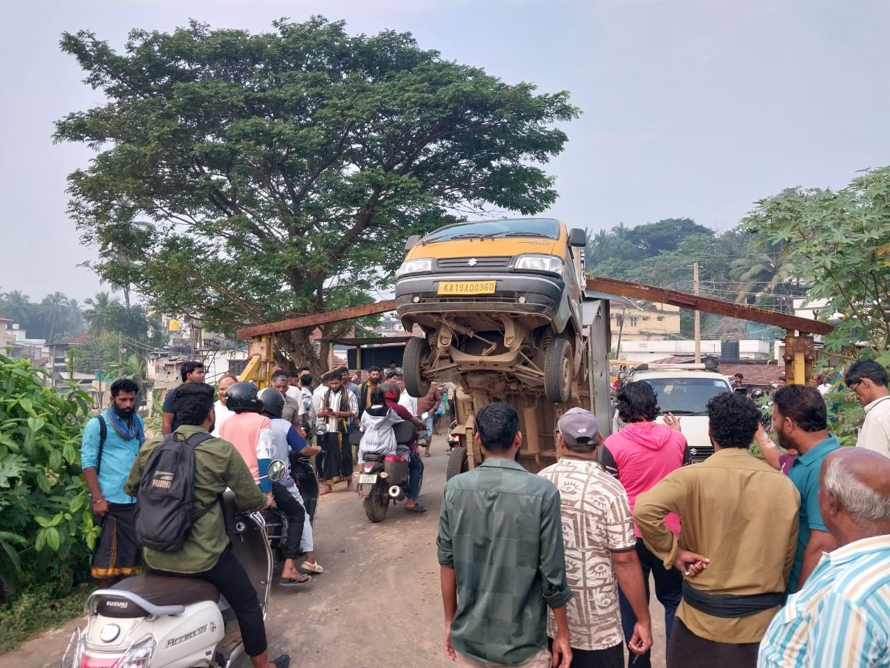 ಟಾಟಾ ಕಂಪೆನಿಯ ಏಸ್ ಗೂಡ್ಸ್ ಟೆಂಪೋವೊಂದು ಚಾಲಕನ ನಿರ್ಲಕ್ಷ್ಯತನದಿಂದ ಸೇತುವೆಯಲ್ಲಿ ಸಿಲುಕಿಕೊಂಡ ಘಟನೆ ನಡೆಯಿತು. ಬಿಸಿರೋಡಿನಿಂದ ಗೂಡಿನಬಳಿಯಾಗಿ ಪಾಣೆಮಂಗಳೂರು ಕಡೆಗೆ ಸಂಚಾರಕ್ಕೆ ಯತ್ನಿಸಿದ ಸಂದರ್ಭ, ಸೇತುವೆಯ ಮೇಲೆ ಘನ ವಾಹನ ಸಂಚಾರ ಮಾಡದಂತೆ ಹಾಕಲಾದ ಕಬ್ಬಿಣದ ತಡೆಬೇಲಿಯಲ್ಲಿ ಸಿಲುಕಿಕೊಂಡಿದೆ. ಘಟನೆಯಿಂದ ಚಾಲಕ ಯಾವುದೇ ಗಾಯವಿಲ್ಲದೆ ಅಪಾಯವಿಲ್ಲದೆ ಪಾರಾಗಿದ್ದು, ವಾಹನ ಸಂಚಾರ ಕೆಲಕಾಲ ಅಸ್ತವ್ಯಸ್ತಗೊಂಡಿತು.