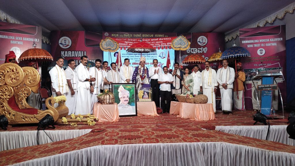 ಕನ್ನಡ ಮತ್ತು ಸಂಸ್ಕೃತಿ ಇಲಾಖೆ ಬೆಂಗಳೂರು, ಚಿಣ್ಣರ ಲೋಕ ಮೋಕೆದ ಕಲಾವಿದೆರ್ ಸೇವಾ ಟ್ರಸ್ಟ್, ಬಂಟ್ವಾಳ ಹಾಗೂ ಚಿಣ್ಣರ ಲೋಕ ಸೇವಾಬಂಧು ಬಂಟ್ವಾಳ ಸಂಯುಕ್ತ ಆಶ್ರಯದಲ್ಲಿ ಬಿ.ಸಿ.ರೋಡ್ ವೃತ್ತ ಬಳಿಯ ಗೋಲ್ಡನ್ ಪಾರ್ಕ್ ಮೈದಾನದಲ್ಲಿ ಆರಂಭಗೊಂಡ ಕರಾವಳಿ ಕಲೋತ್ಸವ 2024-25 ಮತ್ತು ಬಹುಸಂಸ್ಕೃತಿ ಸಂಭ್ರಮ ಕಾರ್ಯಕ್ರಮದ ಎರಡನೇ ದಿನದ ಶನಿವಾರ ಸಂಜೆ ನಡೆದ ಸಭಾ ಕಾರ್ಯಕ್ರಮದಲ್ಲಿ ಮೂಡುಬಿದಿರೆ ಆಳ್ವಾಸ್ ಶಿಕ್ಷಣ ಪ್ರತಿಷ್ಠಾನದ ಅಧ್ಯಕ್ಷ ಡಾ. ಎಂ.ಮೋಹನ ಆಳ್ವ ಅವರಿಗೆ ಕರಾವಳಿ ಸೌರಭ ರಾಜ್ಯಪ್ರಶಸ್ತಿ ನೀಡಿ ಗೌರವಿಸಲಾಯಿತು. ತುಳು ಸಂಪ್ರದಾಯದಂತೆ ಫಲವಸ್ತು, , ಡಾ. ಆಳ್ವ ಅವರ ಭಾವಚಿತ್ರ ಸಹಿತ ಸುವಸ್ತುಗಳನ್ನು ಸಭಾಂಗಣಕ್ಕೆ ಪಲ್ಲಕ್ಕಿಯಲ್ಲಿ ತಂದು ಡಾ. ಆಳ್ವರಿಗೆ ಸಮರ್ಪಿಸಲಾಯಿತು. ಬಿ.ಸಿ.ರೋಡ್ ಸಂಚಯಗಿರಿಯ ರಾಣಿ ಅಬ್ಬಕ್ಕ ತುಳು ಅಧ್ಯಯನ ಕೇಂದ್ರದ ಅಧ್ಯಕ್ಷ ಪ್ರೊ. ತುಕಾರಾಮ ಪೂಜಾರಿ ಅಭಿನಂದನಾ ಭಾಷಣ ಮಾಡಿ ಮೋಹನ ಆಳ್ವ ಅವರು ರೋಲ್ ಮಾಡೆಲ್ ಆಗಿದ್ದಾರೆ ಎಂದು ಶುಭ ಹಾರೈಸಿದರು.