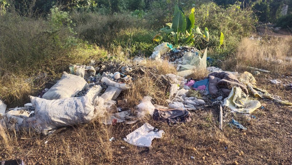 ಕೈಕುಂಜೆ ರುದ್ರಭೂಮಿಯ ಸಮೀಪ ಯಾರೋ ಹೊರಗಿನಿಂದ ಬಂದು ತ್ಯಾಜ್ಯ ಬಿಸಾಡಿ ಹೋಗುತ್ತಿರುವುದು.