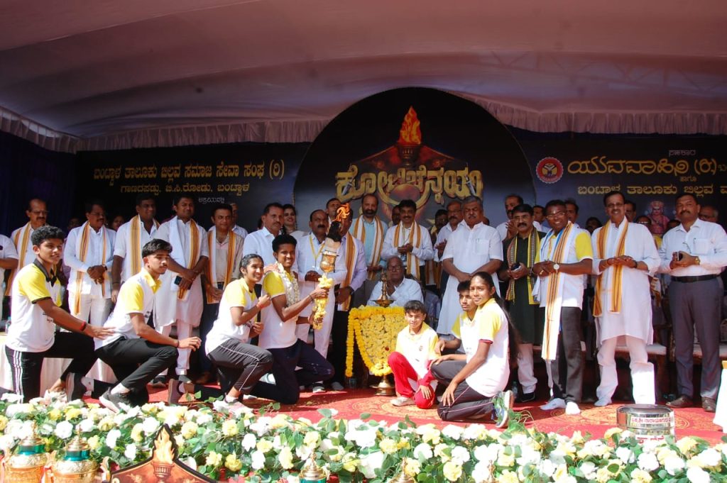 ಬಂಟ್ವಾಳ ತಾಲೂಕು ಬಿಲ್ಲವ ಸಮಾಜ ಸೇವಾ ಸಂಘ, ಬಂಟ್ವಾಳ ತಾಲೂಕು ಕೋಟಿಚೆನ್ನಯ ಕ್ರೀಡೋತ್ಸವ ಸಮಿತಿ, ಯುವವಾಹಿನಿ ಬಂಟ್ವಾಳ ತಾಲೂಕು ಘಟಕ ಹಾಗೂ ಬಂಟ್ವಾಳ ತಾಲೂಕು ಬಿಲ್ಲವ ಮಹಿಳಾ ಸಮಿತಿ ಸಹಕಾರದೊಂದಿಗೆ ಭಾನುವಾರ ಬಂಟ್ವಾಳದ ಭಂಡಾರಿಬೆಟ್ಟುವಿನ ಎಸ್.ವಿ.ಎಸ್.ಕ್ರೀಡಾಂಗಣದಲ್ಲಿ ಬಿಲ್ಲವ ಸಮಾಜ ಬಾಂಧವರಿಗಾಗಿ ಆಯೋಜಿಸಲಾದ ಬಂಟ್ವಾಳ ತಾಲೂಕು ಮಟ್ಟದ ಕೋಟಿ ಚೆನ್ನಯ ಕ್ರೀಡೋತ್ಸವಕ್ಕೆ ಕೇಂದ್ರದ ಮಾಜಿ ಸಚಿವ, ಹಿರಿಯ ಮುಖಂಡ ಬಿ.ಜನಾರ್ದನ ಪೂಜಾರಿ ಚಾಲನೆ ನೀಡಿದರು.