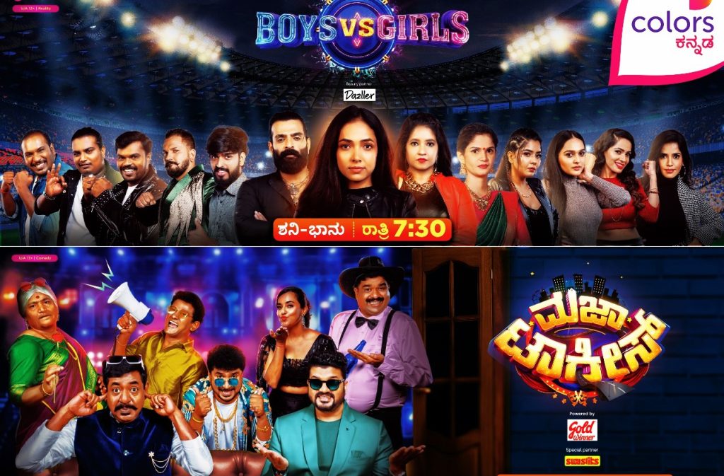 ಪ್ರತಿ ಶನಿವಾರ ಮತ್ತು ಭಾನುವಾರ ಏಳೂವರೆಗೆ ‘ಬಾಯ್ಸ್ ವಿ/ಎಸ್ ಗರ್ಲ್ಸ್’ ಹಾಗೂ 9 ಗಂಟೆಗೆ ʼಮಜಾ ಟಾಕೀಸ್ʼ ಕಾರ್ಯಕ್ರಮಗಳು ನಿಮ್ಮನ್ನು ರಂಜಿಸಲಿವೆ. ಹೊಸ ರೀತಿಯ ರಿಯಾಲಿಟಿ ಶೋಗಳಿಗೆ ಹೆಸರಾಗಿರುವ ಕಲರ್ಸ್ ಕನ್ನಡ ಶುರುಮಾಡುತ್ತಿರುವ ‘ಬಾಯ್ಸ್ ವಿ/ಎಸ್ ಗರ್ಲ್ಸ್’ ಒಂದು ರೋಮಾಂಚಕ ಗೇಮ್ ಶೋ. ಹುಡುಗ ಮತ್ತು ಹುಡುಗಿಯರ ಗುಂಪುಗಳು ಜಿದ್ದಾಜಿದ್ದಿಗೆ ಬಿದ್ದು ನೋಡುಗರ ಬಿಸಿ ಏರಿಸುವ ಆಟದ ಶೋ ‘ಬಾಯ್ಸ್ ವರ್ಸಸ್ ಗರ್ಲ್ಸ್’ ಕನ್ನಡ ಕಿರುತೆರೆಗೆ ಹೊಸದೆನಿಸುವ ಥ್ರಿಲ್ ಹೊತ್ತು ತರಲಿದೆ.ಬಾಯ್ಸ್ ತಂಡವನ್ನು ಬಿಗ್ ಬಾಸ್ ಖ್ಯಾತಿಯ ವಿನಯ್ ಗೌಡ ಮುನ್ನಡೆಸಿದರೆ, ಹುಡುಗಿಯರ ಗುಂಪಿನ ನಾಯಕಿ ನಟಿ ಶುಭಾ ಪೂಂಜಾ. ಇನ್ನು ಸ್ಪರ್ಧಿಗಳ ಪಟ್ಟಿಯೂ ಅಷ್ಟೇ ರೋಚಕವಾಗಿದೆ.