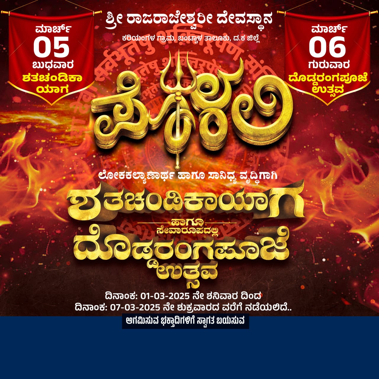 ಬಂಟ್ವಾಳ: ಪೊಳಲಿ ಶ್ರೀ ರಾಜರಾಜೇಶ್ವರೀ ದೇವಸ್ಥಾನದಲ್ಲಿ ಶತಚಂಡಿಕಾಯಾಗ ಹಾಗೂ ಸೇವಾರೂಪದಲ್ಲಿ ದೊಡ್ಡರಂಗಪೂಜೆ ಉತ್ಸವ ನಡೆಯಲಿದೆ. ಲೋಕಕಲ್ಯಾಣಾರ್ಥ ಹಾಗೂ ಸಾನಿಧ್ಯ ವೃದ್ಧಿಗಾಗಿ ಮಾರ್ಚ್ 3ರಿಂದ 07ರವರೆಗೆ ನಡೆಯುವ ದೊಡ್ಡರಂಗಪೂಜೆ ಉತ್ಸವದ ಪೂರ್ವ ಸಿದ್ಧತೆ ಬಗ್ಗೆ ಭಕ್ತಾದಿಗಳ ಸಭೆಯನ್ನು ಫೆ.14ರಂದು ಸಂಜೆ 5ವರೆಗೆ ಪೊಳಲಿಯಲ್ಲಿ ಕರೆಯಲಾಗಿದೆ. ಪೊಳಲಿಗೆ ಸಂಭಂಧಪಟ್ಟ ಗ್ರಾಮಗಳಾದ ಬಡಗ ಉಳಿಪ್ಪಾಡಿ, ತೆಂಕ ಉಳಿಪ್ಪಾಡಿ, ಅಮ್ಮುಂಜೆ, ಕರಿಯಂಗಳ, ಮುತ್ತೂರು, ಕೊಳವೂರು, ಮೊಗರು, ಅಡ್ಡೂರು, ಮಲ್ಲೂರು, ಪೆರ್ಮಂಕಿ, ಮೇರಮಜಲು, ಕೊಡ್ಮಾಣ್, ಅಬ್ಬೆಟ್ಟು, ನೆತ್ತರಕೆರೆ, ಪುದು, ಸುಜೆರ್, ಅರ್ಕುಳ ಗ್ರಾಮದ ಸರ್ವ ಸಂಘ ಸಂಸ್ಥೆಗಳ ಪದಾಧಿಕಾರಿಗಳು, ದೇವಸ್ಥಾನದ ಆಡಳಿತ ಮಂಡಳಿ ಸಮಿತಿ ಪದಾಧಿಕಾರಿಗಳು, ಭಜನಾ ಮಂದಿರ ಸಮಿತಿ ಪದಾಧಿಕಾರಿಗಳು, ಎಲ್ಲಾ ಗ್ರಾಮಸ್ಥರು ಸಭೆಯಲ್ಲಿ ಭಾಗವಹಿಸಿ ತಮ್ಮ ಸಲಹೆ ಸೂಚನೆಗಳನ್ನು ನೀಡಬೇಕೆಂದು ಪ್ರಕಟಣೆ ತಿಳಿಸಿದೆ.