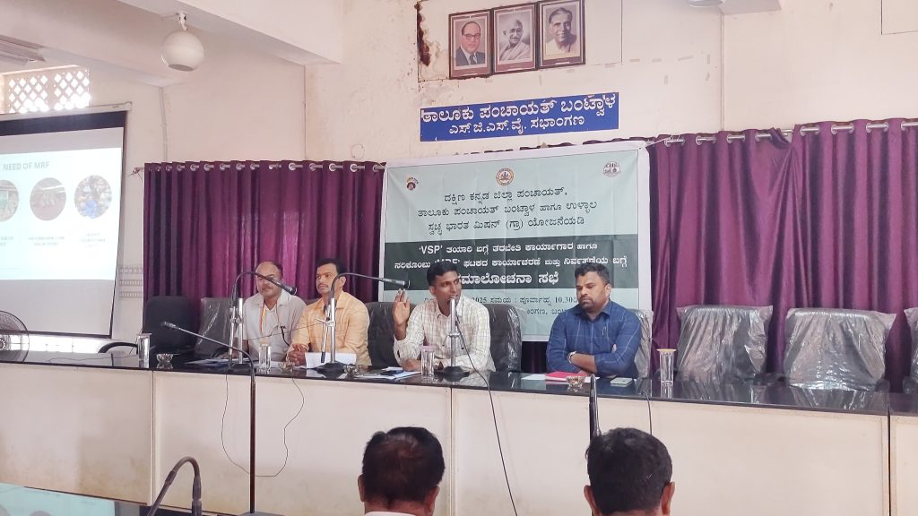 ಬಂಟ್ವಾಳ ತಾಲೂಕು ಪಂಚಾಯತ್ ಸಭಾಂಗಣದಲ್ಲಿ ದಕ್ಷಿಣ ಕನ್ನಡ ಜಿಲ್ಲಾ ಪಂಚಾಯತ್, ತಾಲೂಕು ಪಂಚಾಯತ್ ಬಂಟ್ವಾಳ ಹಾಗೂ ಉಳ್ಳಾಲ, ಸ್ವಚ್ಛ ಭಾರತ್ ಮಿಷನ್ (ಗ್ರಾ) ಯೋಜನೆಯಡಿ ತರಬೇತಿ ಕಾರ್ಯಾಗಾರ ಹಾಗೂ ನರಿಕೊಂಬು ಘನತ್ಯಾಜ್ಯ ನಿರ್ವಹಣಾ ಘಟಕದ ಕಾರ್ಯಾಚರಣೆ ಮತ್ತು ನಿರ್ವಹಣೆಯ ಬಗ್ಗೆ ಸಮಾಲೋಚನಾ ಸಭೆಯಲ್ಲಿ ಮಾತನಾಡಿದರು.