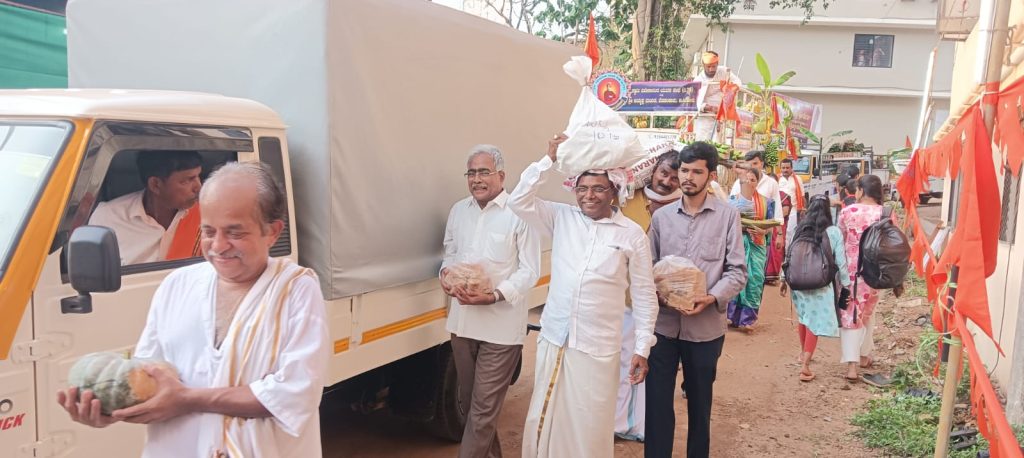 ಊರ, ಪರವೂರ ದಾನಿಗಳ ಹಾಗೂ ಸಂಘ, ಸಂಸ್ಥೆಗಳ ಸಹಕಾರದಿಂದ ಸಂಗ್ರಹಿತ ಸುವಸ್ತುಗಳನ್ನು ವಿವಿಧ ವಾದ್ಯಘೋಷಗಳಿಂದ ಹಾಗೂ ಕುಣಿತ ಭಜನೆಗಳೊಂದಿಗೆ ಕ್ಷೇತ್ರಕ್ಕೆ ತರಲಾಯಿತು. ಅಕ್ಕಿ, ಬೆಲ್ಲ, ಬೇಳೆಕಾಳುಗಳು, ತೆಂಗಿನಕಾಯಿ,ತರಕಾರಿ, ಅಡಕೆಗೊನೆ, ಸೀಯಾಳ ಗೊನೆ, ಬಾಳೆಗೊನೆ, ಹಿಂಗಾರ, ಸಕ್ಕರೆ, ಕಬ್ಬು, ದರ್ಬೆ, ಹಾಳೆತಟ್ಟೆ ಸಹಿತ ಹಲವು ವಸ್ತುಗಳನ್ನು ಹೊತ್ತ ವಾಹನಗಳು ಮೆರವಣಿಗೆಯಲ್ಲಿದ್ದವು.