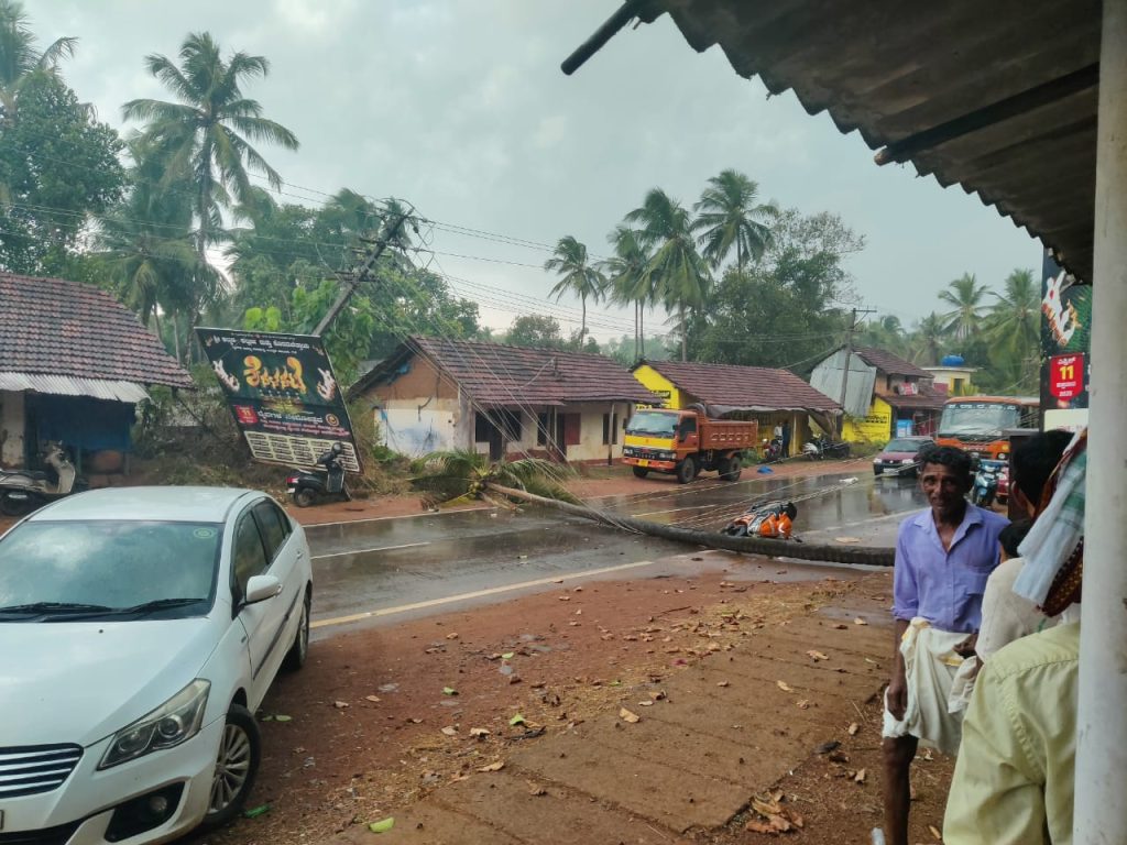 ಮಂಗಳವಾರ ಸಂಜೆ ಬಂಟ್ವಾಳ ತಾಲೂಕಿನ ಹಲವೆಡೆ ಬಿರುಗಾಳಿ ಸಹಿತ ಮಳೆಯಾಗಿದ್ದು, ಇದರಿಂದ ಹಲವೆಡೆ ಅನಾಹುತಗಳು ಉಂಟಾಗಿವೆ. ಮುಸ್ಸಂಜೆ ವೇಳೆ ಪರಿಸ್ಥಿತಿ ಸಹಜವಾಯಿತು.ನೆಟ್ಲಮುಡ್ನೂರು ಗ್ರಾಮದ ನೇರಳಕಟ್ಟೆ ಎಂಬಲ್ಲಿ ಮಾಣಿ ಮೈಸೂರು ರಾಷ್ಟ್ರೀಯ ಹೆದ್ದಾರಿಗೆ ಮರ ಹಾಗೂ ವಿದ್ಯುತ್ ಕಂಬ ಬಿದ್ದಿದ್ದು, ಬಳಿಕ ಮೆಸ್ಕಾಂ ಹಾಗೂ ಸ್ಥಳೀಯರ ನೆರವಿನಿಂದ ತೆರವುಗೊಳಿಸಲಾಯಿತು. ಪ್ರಸ್ತುತ ರಸ್ತೆ ಸಂಚಾರ ಸುಗಮಗೊಂಡಿದೆ.ಬಾಳ್ತಿಲ ಗ್ರಾಮದ ಬೇಬಿ ಎಂಬವರ ಮನೆಯ ಶೀಟು ಛಾವಣಿಗೆ ಮಳೆ ಗಾಳಿಯಿಂದ ಹಾನಿಯಾಗಿದೆ. ನಾವೂರು ಗ್ರಾಮದ ಸುಲ್ತಾನ್ ಕಟ್ಟೆ ನಿವಾಸಿ ಮಹಮ್ಮದ್ ಇಸಾಕ್ ಅವರ ವಾಸ್ತವ್ಯದ ಮನೆ ಹಾನಿಯಾಗಿದೆ.