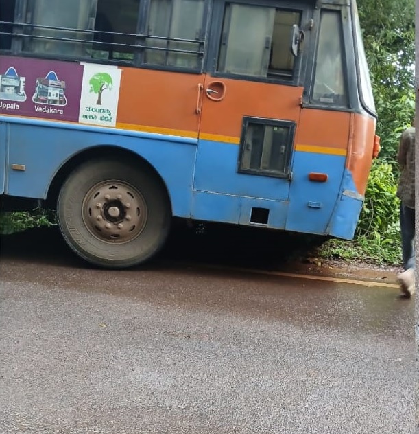 ಪುತ್ತೂರಿನಿಂದ ಉಪ್ಪಳ ಕಡೆಗೆ ಸಾಗುತ್ತಿದ್ದ ಕೆ.ಎಸ್.ಆರ್.ಟಿ.ಸಿ.ಬಸ್ ಒಂದು ಕನ್ಯಾನ ಬೈರಿಕಟ್ಟೆಯ ಕೆಳಗಿನ ತಿರುವಿನಲ್ಲಿ ಮಾರ್ಗ ಬಿಟ್ಟು ಹೊಂಡಕ್ಕೆ ವಾಲಿನಿಂತ ಘಟನೆ ಗುರುವಾರ ಸಂಜೆ ಸುಮಾರು 6.30ರ ವೇಳೆ ನಡೆಯಿತು. ವೇಗದ ಚಾಲನೆಯಿಂದ ಈ ರೀತಿಯ ಘಟನೆಯಾಗಿದೆ ಎಂದು ಪ್ರಯಾಣಿಕರು ದೂರಿದ್ದಾರೆ. ಅದೃಷ್ಟವಶಾತ್ ಬಸ್ ಪಲ್ಟಿಯಾಗಿಲ್ಲ.