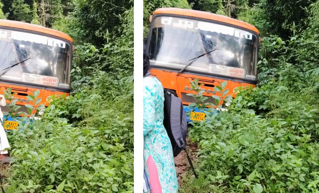 ಪುತ್ತೂರಿನಿಂದ ಉಪ್ಪಳ ಕಡೆಗೆ ಸಾಗುತ್ತಿದ್ದ ಕೆ.ಎಸ್.ಆರ್.ಟಿ.ಸಿ.ಬಸ್ ಒಂದು ಕನ್ಯಾನ ಬೈರಿಕಟ್ಟೆಯ ಕೆಳಗಿನ ತಿರುವಿನಲ್ಲಿ ಮಾರ್ಗ ಬಿಟ್ಟು ಹೊಂಡಕ್ಕೆ ವಾಲಿನಿಂತ ಘಟನೆ ಗುರುವಾರ ಸಂಜೆ ಸುಮಾರು 6.30ರ ವೇಳೆ ನಡೆಯಿತು. ವೇಗದ ಚಾಲನೆಯಿಂದ ಈ ರೀತಿಯ ಘಟನೆಯಾಗಿದೆ ಎಂದು ಪ್ರಯಾಣಿಕರು ದೂರಿದ್ದಾರೆ. ಅದೃಷ್ಟವಶಾತ್ ಬಸ್ ಪಲ್ಟಿಯಾಗಿಲ್ಲ.