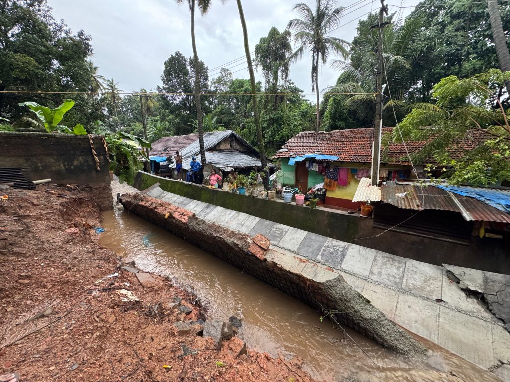 Retaining wall has collapsed into the stormwater drain near Attavara MESCOM, Ward 40, causing blockage and artificial flooding in the area.