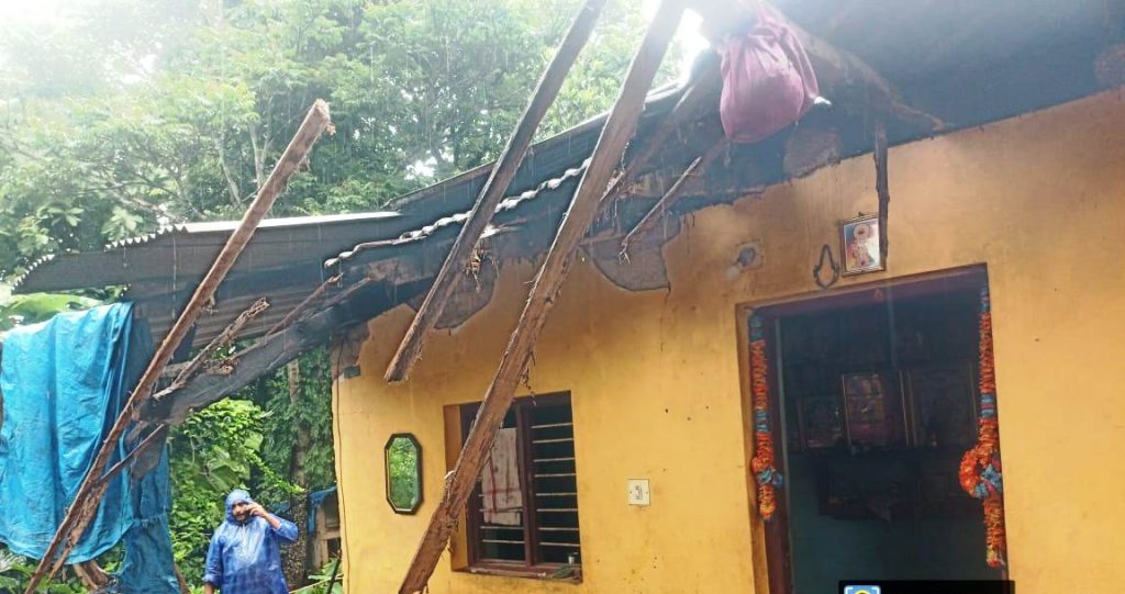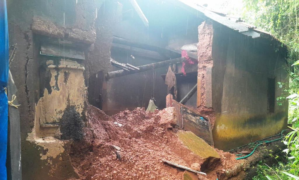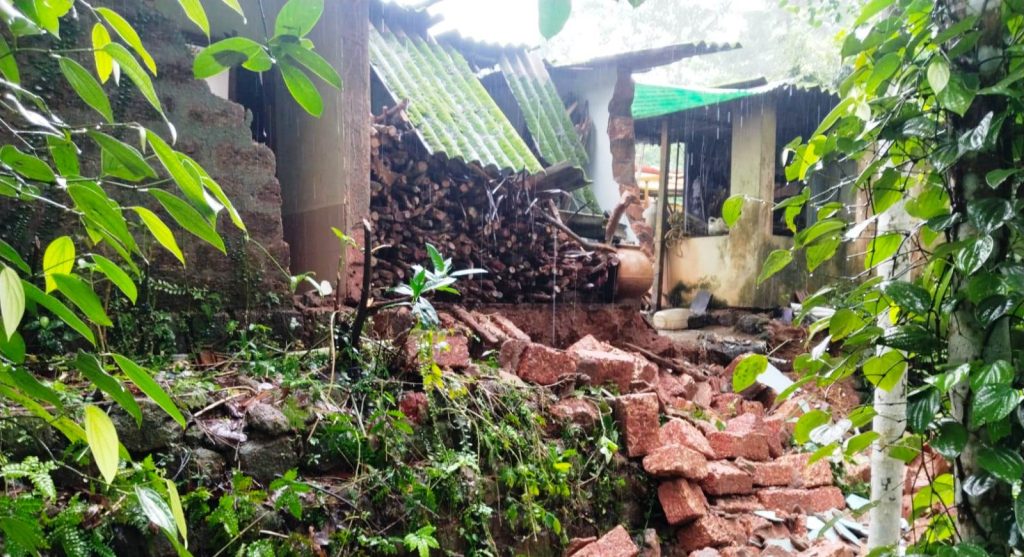 ಕಾಡುಮಠದಲ್ಲಿ ಮನೆ ಕುಸಿದಿರುವುದು
