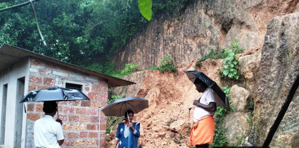 ಅಮ್ಮುಂಜೆ ಗ್ರಾಮದಲ್ಲಿ ಅಪಾಯಕಾರಿ ಗುಡ್ಡ ಬಳಿಯ ಜನರನ್ನು ಸ್ಥಳಾಂತರಿಸಲಾಯಿತು.