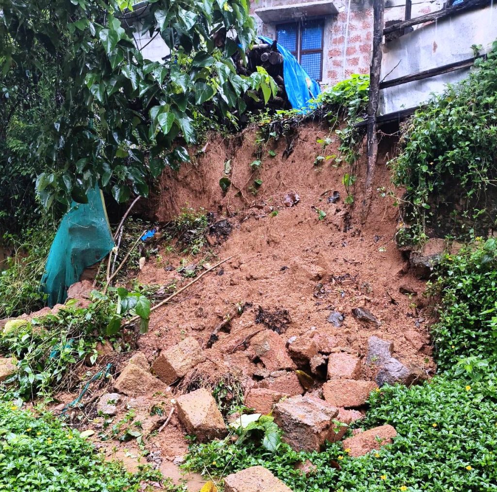 ವಿಟ್ಲ ಪಡ್ನೂರು ಗ್ರಾಮದ ಎರ್ಮೆನಿಲೆ ಎಂಬಲ್ಲಿ ಶೀನ ಪರವ ಬಿನ್ ಕರಿಯ ಪರವ ಅವರ ಮನೆಯ ಹಿಂಭಾಗದಲ್ಲಿ ಗುಡ್ಡ ಕುಸಿದಿರುತ್ತದೆ.ಮನೆಯವರು ಸಂಬಂಧಿಕರ ಮನೆಗೆ ಸ್ಥಳಾಂತರಗೊಂಡಿರುತ್ತಾರೆ.