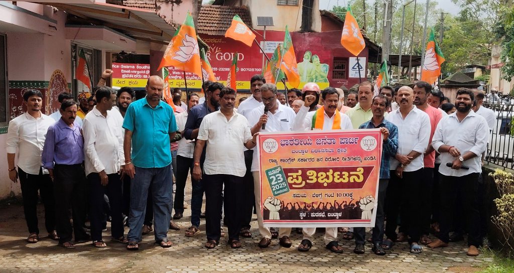 ರಾಜ್ಯ ಸರಕಾರದ ವಿರುದ್ಧ ಬಿಜೆಪಿ ನಡೆಸುತ್ತಿರುವ ಬಂಟ್ವಾಳ ಪುರಸಭೆ ಮುಂಭಾಗ ಸೋಮವಾರ ನಡೆದಿದ್ದು, ಪಕ್ಷದ ಜಿಲ್ಲಾಧ್ಯಕ್ಷ ಸತೀಶ್ ಕುಂಪಲ ನೇತೃತ್ವ ವಹಿಸಿದರು.ಈ ಸಂದರ್ಭ ಮಾತನಾಡಿದ ಅವರು ರಾಜ್ಯ ಸರಕಾರದ ನೀತಿಗಳಿಂದಾಗಿ ಯಾವುದೇ ಅಭಿವೃದ್ದಿ ಕಾಮಗಾರಿಗಳು ನಡೆಯುತ್ತಿಲ್ಲ. ತುಷ್ಟೀಕರಣದ ರಾಜಕಾರಣವನ್ನು ಮಾಡುತ್ತಿರುವ ಆಳುವ ಸರಕಾರ ಜನರ ವಿಶ್ವಾಸವನ್ನು ಕಳೆದುಕೊಂಡಿದೆ ಎಂದರು.