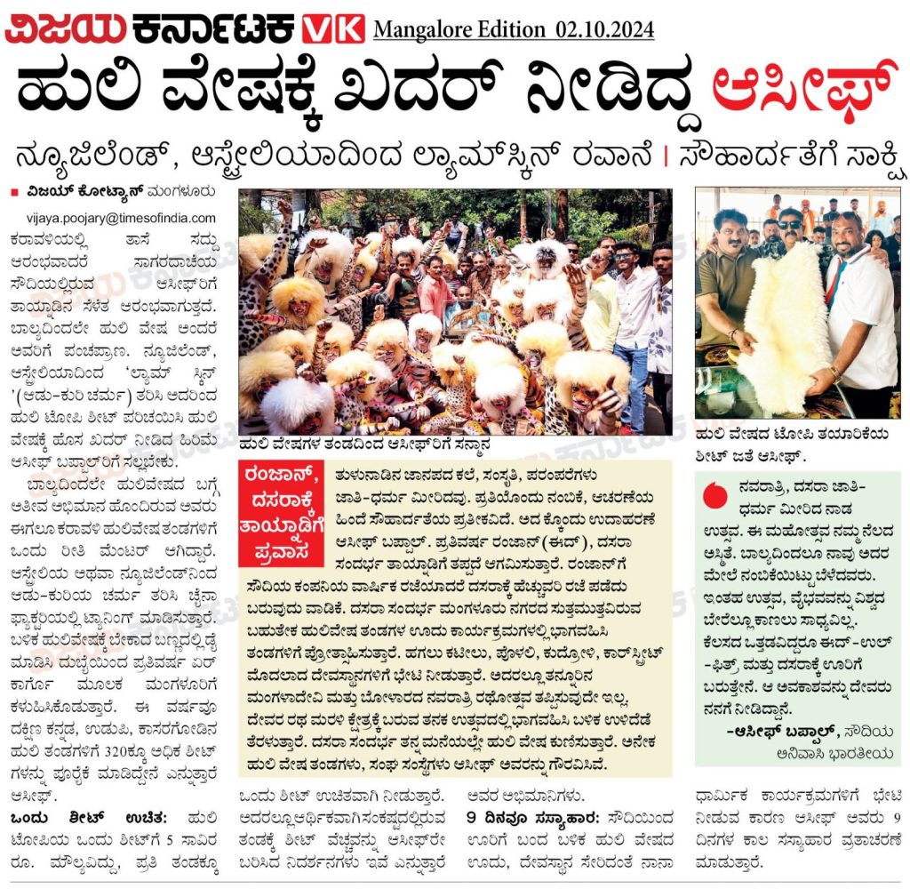 ದ.ಕ.ಜಿಲ್ಲಾ ಕಾರ್ಯನಿರತ ಪತ್ರಕರ್ತರ ಸಂಘದಿಂದ ಸೌಹಾರ್ದ ಬಿಂಬಿಸುವ ವರದಿಗೆ ನೀಡಲಾಗುವ “ಬ್ರ್ಯಾಂಡ್ ಮಂಗಳೂರು” ಪ್ರಶಸ್ತಿಗೆ ವಿಜಯ ಕರ್ನಾಟಕ ಹಿರಿಯ ವರದಿಗಾರ ವಿಜಯಕೋಟ್ಯಾನ್ ಪಡು ಆಯ್ಕೆಯಾಗಿದ್ದಾರೆ. ವಿಜಯ ಕರ್ನಾಟಕ ಪತ್ರಿಕೆಯಲ್ಲಿ 2024 ಅಕ್ಟೋಬರ್ 2 ರಂದು ಪ್ರಕಟವಾದ “ಹುಲಿ ವೇಷಕ್ಕೆ ಖದರ್ ನೀಡಿದ್ದ ಆಸಿಫ್” ಎಂಬ ವರದಿಗೆ ಪ್ರಶಸ್ತಿ ಲಭಿಸಿದೆ.