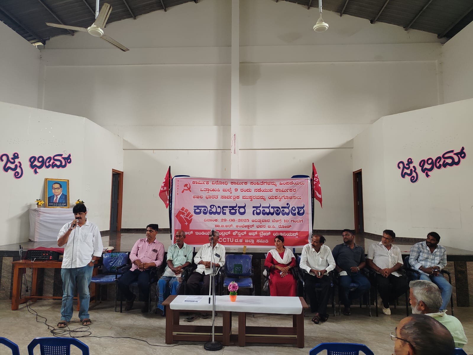 ಕಾರ್ಮಿಕ ಕಾಯ್ದೆಗಳ ತಿದ್ದುಪಡಿ ವಿರೋಧಿಸಿ ಹಾಗೂ ಕೇಂದ್ರ ಸರಕಾರದ ಕಾರ್ಮಿಕ ವಿರೋಧಿ ನೀತಿಗಳನ್ನು ವಿರೋಧಿಸಿ ಕಾರ್ಮಿಕ ಸಂಘಟನೆಗಳಿಂದ ಜುಲೈ 9ರಂದು ಅಖಿಲ ಭಾರತ ಮುಷ್ಕರಕ್ಕೆ ಕರೆ ನೀಡಿದ್ದು ಇದನ್ನು ಯಶಸ್ವಿಗೊಳಿಸಲು ಎ.ಐ.ಸಿ.ಸಿ.ಟಿ.ಯು ದಕ್ಷಿಣ ಕನ್ನಡ ಜಿಲ್ಲಾ ಸಮಿತಿ ವತಿಯಿಂದ ಕಾರ್ಮಿಕರ ಸಮಾವೇಶ ಬಿ.ಸಿ.ರೋಡ್ ನ ಡಾ. ಬಿ.ಆರ್ .ಅಂಬೇಡ್ಕರ್ ಭವನದಲ್ಲಿ ನಡೆಯಿತು.