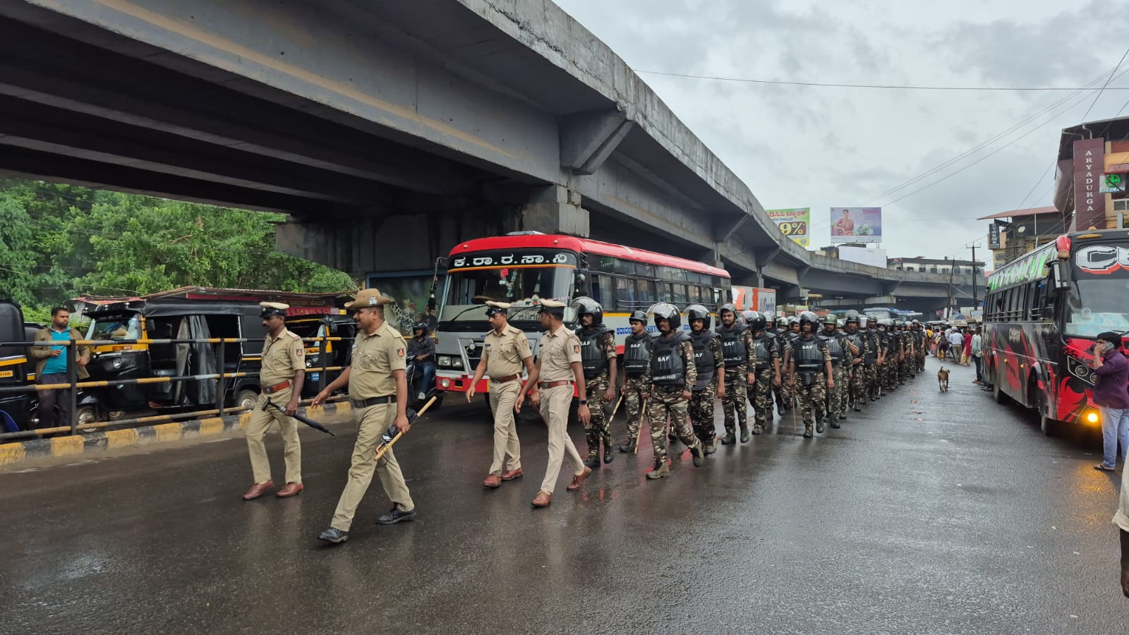 In order to strengthen law and order, a special task force arrived in Bantwal, root march took place from the Kaikamba to B.C.Road. The Bantwal city police station’s police inspector Ananthapadmanabha, SI Ramakrishna, traffic SI Sutesh, and staff participated with the special task force.