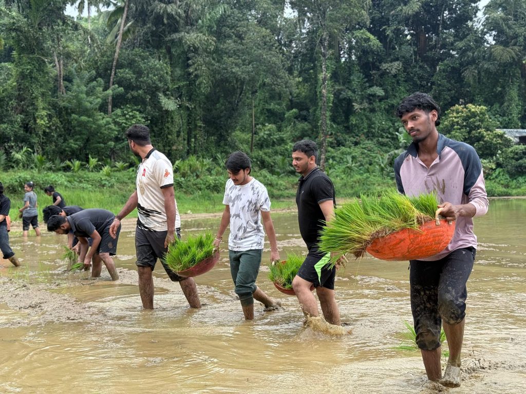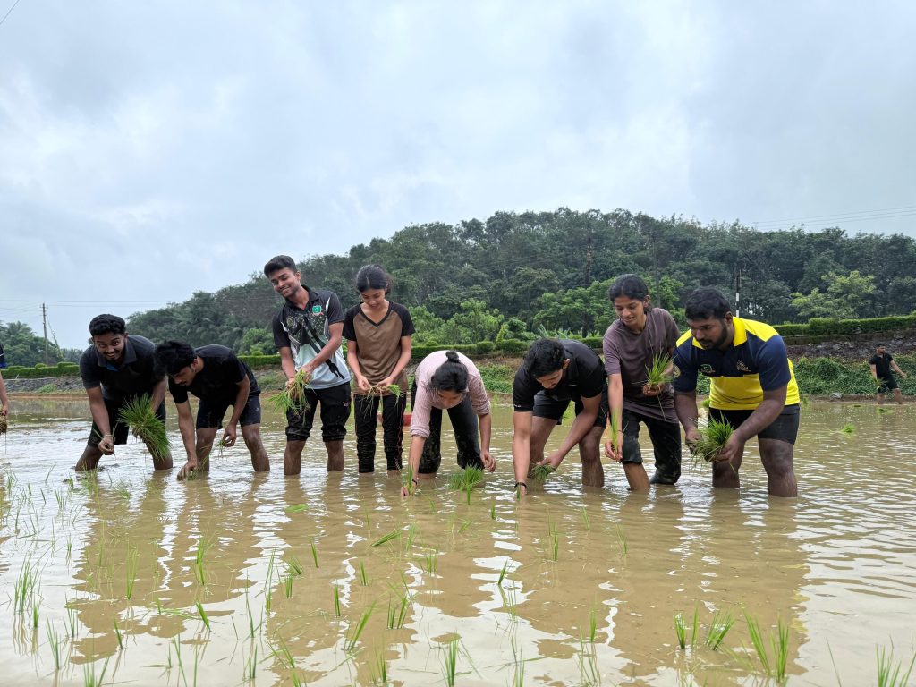 ಉಳುಮೆ ಮಾಡಲಾಗಿದ್ದ ಗದ್ದೆಯಲ್ಲಿ ವಿದ್ಯಾರ್ಥಿಗಳ ತಂಡ ನೇಜಿಯನ್ನು ನೆಡುವ ಮೂಲಕ ಭತ್ತದ ಕೃಷಿಯ ಬಗ್ಗೆ ಮಾಹಿತಿ ಪಡೆದುಕೊಂಡರು.