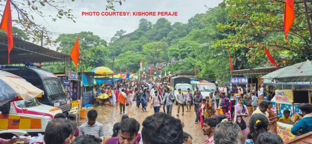 ಆಟಿ ಅಮಾವಾಸ್ಯೆ ಹಿನ್ನೆಲೆಯಲ್ಲಿ ಬಂಟ್ವಾಳ ತಾಲೂಕಿನ ಪ್ರಸಿದ್ಧ ಪ್ರವಾಸಿ ಹಾಗೂ ಧಾರ್ಮಿಕ ಕೇಂದ್ರ ನರಹರಿ ಪರ್ವತ ಸದಾಶಿವ ದೇವಸ್ಥಾನದಲ್ಲಿ ಸುರಿಯುವ ಮಳೆಯನ್ನು ಲೆಕ್ಕಿಸದೆ ನೂರಾರು ಮಂದಿ ಆಗಮಿಸಿ ತೀರ್ಥಸ್ನಾನ ಕೈಗೊಂಡರು.
