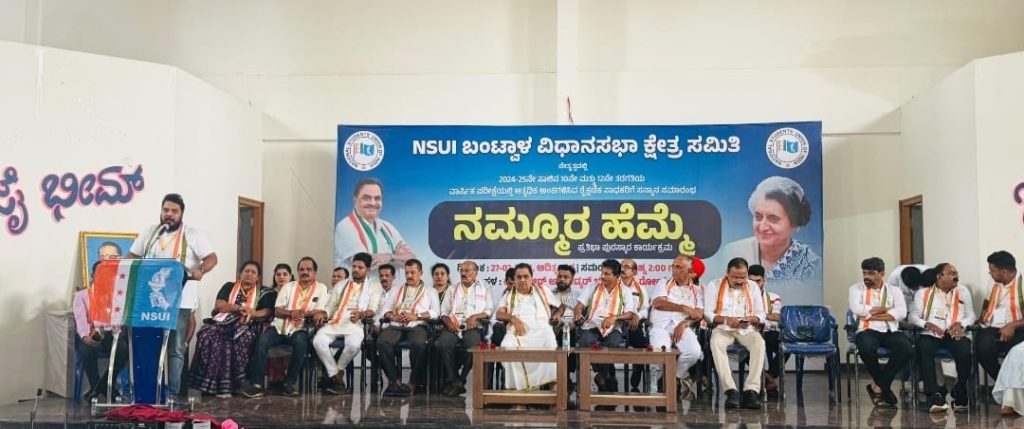 ಭಾರತ ರಾಷ್ಟ್ರೀಯ ವಿದ್ಯಾರ್ಥಿ ಒಕ್ಕೂಟ (ಎನ್ ಎಸ್ ಯು ಐ) ಬಂಟ್ವಾಳ ವಿಧಾನಸಭಾ ಕ್ಷೇತ್ರ ಸಮಿತಿ ವತಿಯಿಂದ 2024-25 ನೇ ಸಾಲಿನ ಎಸ್ಸೆಸ್ಸೆಲ್ಸಿ ಮತ್ತು ಪಿಯುಸಿ ಪರೀಕ್ಷೆಯಲ್ಲಿ ಅತ್ಯಧಿಕ ಅಂಕ ಪಡೆದ ವಿದ್ಯಾರ್ಥಿಗಳಿಗೆ ಸನ್ಮಾನ ಹಾಗೂ ಪ್ರತಿಭಾ ಪುರಸ್ಕಾರ ” ನಮ್ಮೂರ ಹೆಮ್ಮೆ” ಕಾರ್ಯಕ್ರಮವು ಬಿ.ಸಿ ರೋಡಿನ ಅಂಬೇಡ್ಕರ್ ಭವನದಲ್ಲಿ ಭಾನುವಾರ ಸಂಜೆ ನಡೆಯಿತು.