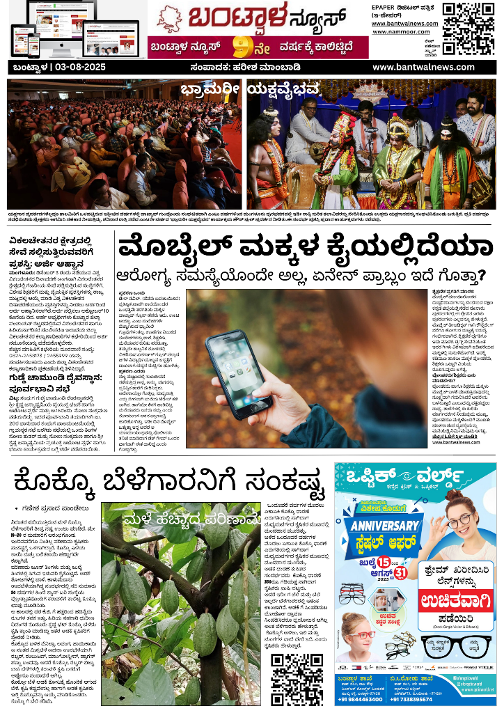 2016ರಲ್ಲಿ ಆರಂಭಿಸಿದ ಬಂಟ್ವಾಳ ತಾಲೂಕಿನ ಮೊದಲ ವೆಬ್ ಪತ್ರಿಕೆ. ಲಕ್ಷಾಂತರ ಮಂದಿ ಓದಿದ್ದಾರೆ, ಓದುತ್ತಿದ್ದಾರೆ. ಸುದ್ದಿಗಳು, ವಿಶ್ಲೇಷಣೆಗೆ ಆದ್ಯತೆ. ಒಂಭತ್ತನೇ ವರ್ಷಕ್ಕೆ ಕಾಲಿಟ್ಟಿರುವ www.bantwalnews.comಗೆ ಆರ್ಥಿಕ ಸಹಕಾರವೂ ಬೇಕು. ಪ್ರಾಯೋಜಕತ್ವ ಅಥವಾ ಜಾಹೀರಾತು ನೀಡುವುದಿದ್ದರೆ 9448548127 ಸಂಪರ್ಕಿಸಬಹುದು.  --- ಹರೀಶ ಮಾಂಬಾಡಿ, ಸಂಪಾದಕ NOTE: : All opinions regarding the articles published in bantwalnews and the related topic are those of the author, and this has no relation to BantwalNews. Recommendations and suggestions provided here are left for the readers' consideration.