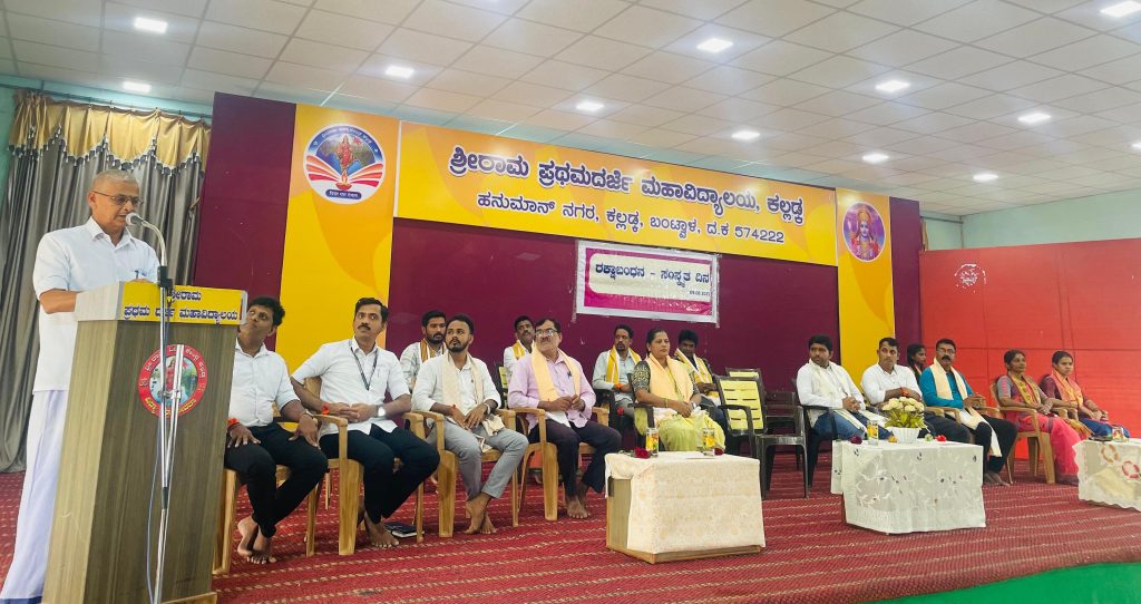 ಕಲ್ಲಡ್ಕದ ಶ್ರೀರಾಮ ಪ್ರಥಮದರ್ಜೆ ಮಹಾವಿದ್ಯಾಲಯದ ಸಾಂಸ್ಕೃತಿಕ ಸಂಘ ಮತ್ತು ಸಂಸ್ಕೃತ ವಿಭಾಗದಿಂದ ಆಯೋಜಿಸಲಾಗಿದ್ದ ರಕ್ಷಾಬಂಧನ ಹಾಗೂ ಸಂಸ್ಕೃತ ದಿನ ಕಾರ್ಯಕ್ರಮ ಸಂಸ್ಥೆಯ ಆಜಾದ್ ಭವನದಲ್ಲಿ ನಡೆಯಿತು. ಈ ಬಾರಿಯ ರಕ್ಷಾಬಂಧನವನ್ನು ಗ್ರಾಮ ಪಂಚಾಯಿತಿ ಸಿಬ್ಬಂದಿವರ್ಗದವರೊಂದಿಗೆ ಆಚರಿಸಲಾಯಿತು.