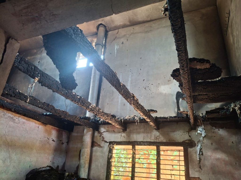 ಬೋರುಗುಡ್ಡೆ ನಿವಾಸಿ ರಮೇಶ್ ಅವರ ಮನೆಗೆ ಬೆಂಕಿ ತಗಲಿದ್ದು, ವಿದ್ಯುತ್ ಶಾರ್ಟ್ ಸರ್ಕ್ಯೂಟ್ ನಿಂದ ಘಟನೆ ನಡೆದಿರುವ ಕುರಿತು ಸಂಶಯಿಸಲಾಗಿದೆ. ಮುಂಜಾನೆ 4ರ ಸುಮಾರಿಗೆ ಘಟನೆ ನಡೆದಿದ್ದು, ಮಲಗಿದ್ದ ಮನೆ ಮಂದಿ ಹೊರಬಂದು ಯಾವುದೇ ಅಪಾಯಗಳಿಲ್ಲದೆ ಪಾರಾಗಿದ್ದಾರೆ. ಮನೆಯೊಳಗಿದ್ದ ವಿದ್ಯುತ್ ಪರಿಕರಗಳು, ಇತರ ಸೊತ್ತುಗಳು ಸಂಪೂರ್ಣ ಸುಟ್ಟು ಹೋಗಿದೆ. ಬಂಟ್ವಾಳ ಅಗ್ನಿಶಾಮಕ ದಳದವರು ಬೆಂಕಿ ನಂದಿಸುವ ಕಾರ್ಯ ನಿರ್ವಹಿಸಿದರು,