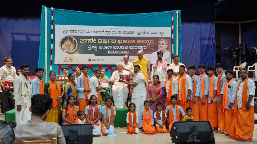 ಶ್ರೀ ಕ್ಷೇತ್ರ ಧರ್ಮಸ್ಥಳದಲ್ಲಿ ಶ್ರೀ ಧರ್ಮಸ್ಥಳ ಮಂಜುನಾಥೇಶ್ವರ ಭಜನಾ ಪರಿಷತ್ ವತಿಯಿಂದ ನಡೆಯುತ್ತಿರುವ 27ನೇ ಭಜನಾ ತರಬೇತಿ ಕಮ್ಮಟದಲ್ಲಿ ಶ್ರೀ ಸಿದ್ದಿವಿನಾಯಕ ಭಜನಾ ಮಂಡಳಿ ತುಳಸೀವನ, ಬೋಳಂತೂರು ತಂಡ ದಕ್ಷಿಣ ಕನ್ನಡ ಜಿಲ್ಲೆಯ ವಿಟ್ಲ ತಾಲೂಕಿನ ಶ್ರೇಷ್ಠ ಭಜನಾ ಮಂಡಳಿ ಪುರಸ್ಕಾರ ಸಾಧಕ ಪ್ರಶಸ್ತಿಯನ್ನು ಪಡೆದುಕೊಂಡಿತು.