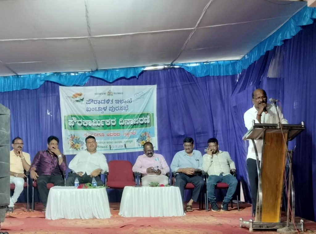 ಬಂಟ್ವಾಳ ಪುರಸಭೆಯ ವತಿಯಿಂದ ಪೌರಕಾರ್ಮಿಕರ ದಿನಾಚರಣೆ ಕಾರ್ಯಕ್ರಮ ನಡೆಯಿತು. ಬೆಳಿಗ್ಗೆ ಎಸ್ ವಿ ಎಸ್ ದೇವಳ ಶಾಲಾ ಕ್ರೀಡಾಂಗಣದಲ್ಲಿ ಪೌರಕಾರ್ಮಿಕರ ಕ್ರೀಡಾಕೂಟ ನಡೆಯಿತು. ಅಪರಾಹ್ನ ನಡೆದ ಸಭಾ ಕಾರ್ಯಕ್ರಮದಲ್ಲಿ ಕ್ರೀಡಾಕೂಟದಲ್ಲಿ ವಿಜೇತರಿಗೆ ಬಹುಮಾನ ವಿತರಿಸಲಾಯಿತು. ಪೌರಕಾರ್ಮಿಕರಿಗೆ ಆರೋಗ್ಯ ವಿಮೆ ಸೌಲಭ್ಯ ಮತ್ತು ನೇರ ಪಾವತಿ ಪೌರಕಾರ್ಮಿಕರಿಗೆ ಸಮವಸ್ತ್ರ ವಿತರಿಸಲಾಯಿತು