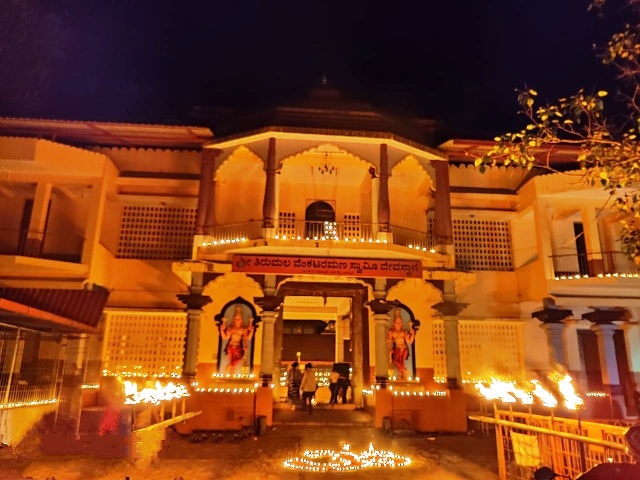 ಬಂಟ್ವಾಳದ ಶ್ರೀ ತಿರುಮಲ ವೆಂಕಟರಮಣ ಸ್ವಾಮಿ ದೇವಸ್ಥಾನದಲ್ಲಿ ಅಕ್ಟೋಬರ್ 26ರಂದು ಬೆಳಗ್ಗೆ ವಿಶ್ವರೂಪದರ್ಶನ ಸೇವೆ ನಡೆಯಲಿದೆ. ವಿಶ್ವಾವಸು ನಾಮ ಸಂವತ್ಸರದ ಕಾರ್ತಿಕ ಶುದ್ಧ ಪಂಚಮಿಯಾದ ಭಾನುವಾರ ಪ್ರಾತಃಕಾಲ 4 ಗಂಟೆಗೆ ಬ್ರಾಹ್ಮೀ ಮುಹೂರ್ತದಲ್ಲಿ ಶ್ರೀ ತಿರುಮಲ ವೆಂಕಟರಮಣ ದೇವರ ದಿವ್ಯ ಸನ್ನಿಧಿಯಲ್ಲಿ ಲೋಕಕಲ್ಯಾಣಕ್ಕಾಗಿ 24ನೇ ವರ್ಷದ ವಿಶ್ವರೂಪದರ್ಶನ ಸೇವೆಯನ್ನು ದಿವ್ಯಜ್ಯೋತಿ ಬೆಳಗಿಸಿ ಸಮಸ್ತ ಭಜಕ ವೃಂದದವರ ಸಹಕಾರದೊಂದಿಗೆ ಜರುಗಿಸುವುದಾಗಿ ಪ್ರಕಟಣೆ ತಿಳಿಸಿದೆ. ಕಾರ್ಯಕ್ರಮದ ವಿವರಗಳು ಹೀಗಿವೆ. ಪ್ರಾತಕಾಲ 5 ಗಂಟೆಗೆ ಕಾಕಡಾರತಿ, ಜಾಗರ ಪೂಜೆ ನಂತರ ವಿಶೇಷಾಲಂಕಾರ ಶ್ರೀ ದೇವರ ವಿಶೇಷ ವಿಶ್ವರೂಪದರ್ಶನ ಭಾಗ್ಯ, ಪ್ರಸಾದ ವಿತರಣೆ. ಬೆಳಿಗ್ಗೆ 4.30 ರಿಂದ 7ರ ವರೆಗೆ ಸಂತ ವಾಣಿ ಭಜನಾ ಕಾರ್ಯಕ್ರಮ ಜರುಗಲಿರುವುದು ಎಂದು ಪ್ರಕಟಣೆಯಲ್ಲಿ ತಿಳಿಸಲಾಗಿದೆ.