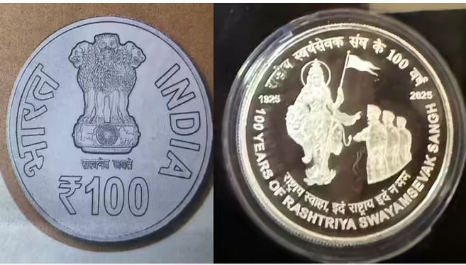 ರಾಷ್ಟ್ರೀಯ ಸ್ವಯಂ ಸೇವಕ ಸಂಘದ (RSS) ಶತಮಾನೋತ್ಸವ ಸ್ಮರಣಾರ್ಥ ಪ್ರಧಾನಿ ನರೇಂದ್ರ ಮೋದಿ ರೂ.100 ನಾಣ್ಯ ಹಾಗೂ ವಿಶೇಷ ಅಂಚೆ ಚೀಟಿಯನ್ನು ಬಿಡುಗಡೆ ಮಾಡಿದ್ದಾರೆ. 100 ರೂಪಾಯಿ ಬೆಳ್ಳಿಯ ನಾಣ್ಯದ ಒಂದು ಬದಿಯಲ್ಲಿ ರಾಷ್ಟ್ರೀಯ ಲಾಂಛನ, ಇನ್ನೊಂದು ಬದಿಯಲ್ಲಿ ಸಿಂಹ, ಅಭಯ ಮುದ್ರೆಯಲ್ಲಿರುವ ಭಾರತ ಮಾತೆಯ ಚಿತ್ರ ಮತ್ತು ಸ್ವಯಂಸೇವಕರು ಭಕ್ತಿಯಿಂದ ನಮಸ್ಕರಿಸುವ ಚಿತ್ರವಿದೆ.