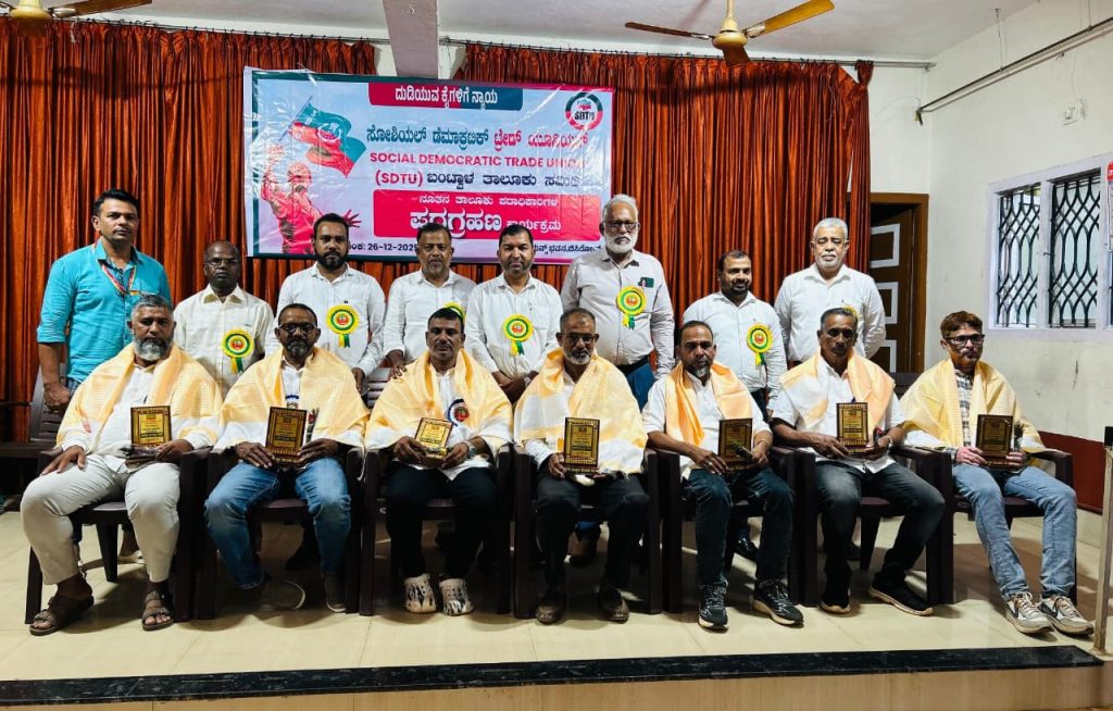 ಸೋಶಿಯಲ್ ಡೆಮಾಕ್ರಟಿಕ್ ಟ್ರೇಡ್ ಯೂನಿಯನ್ ಬಂಟ್ವಾಳ ತಾಲೂಕು ಸಮಿತಿಗೆ ನೂತನವಾಗಿ ಆಯ್ಕೆಯಾದ ಪದಾಧಿಕಾರಿಗಳ ಪದಗ್ರಹಣ ಕಾರ್ಯಕ್ರಮವು ಬಿ ಸಿ ರೋಡ್ ನ ಲಯನ್ಸ್ ಭವನದಲ್ಲಿ ನಡೆಯಿತು.