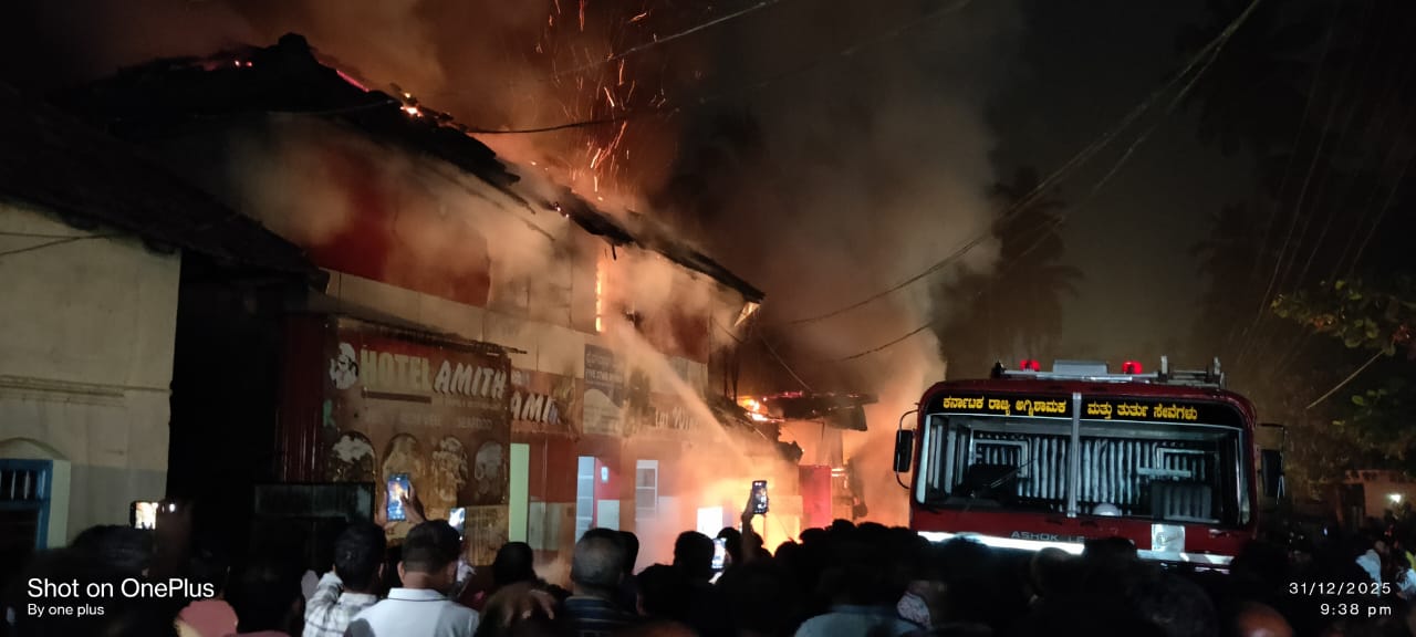 ವಿಟ್ಲ ಜಂಕ್ಷನ್ ಬಳಿ ಮಂಗಳೂರು ರಸ್ತೆ ಬದಿಯ ಎಲೆಕ್ಟ್ರಾನಿಕ್ ಅಂಗಡಿಯಲ್ಲಿ ಕಾಣಿಸಿಕೊಂಡ ಬೆಂಕಿ ಸುತ್ತಲಿನ ಮಳಿಗೆಗಳಿಗೂ ವ್ಯಾಪಿಸಿ, ಸುಮಾರು 6 ಅಂಗಡಿಗಳು ಸುಟ್ಟು ಹೋದ ಘಟನೆ ಬುಧವಾರ ರಾತ್ರಿ ನಡೆದಿದೆ.