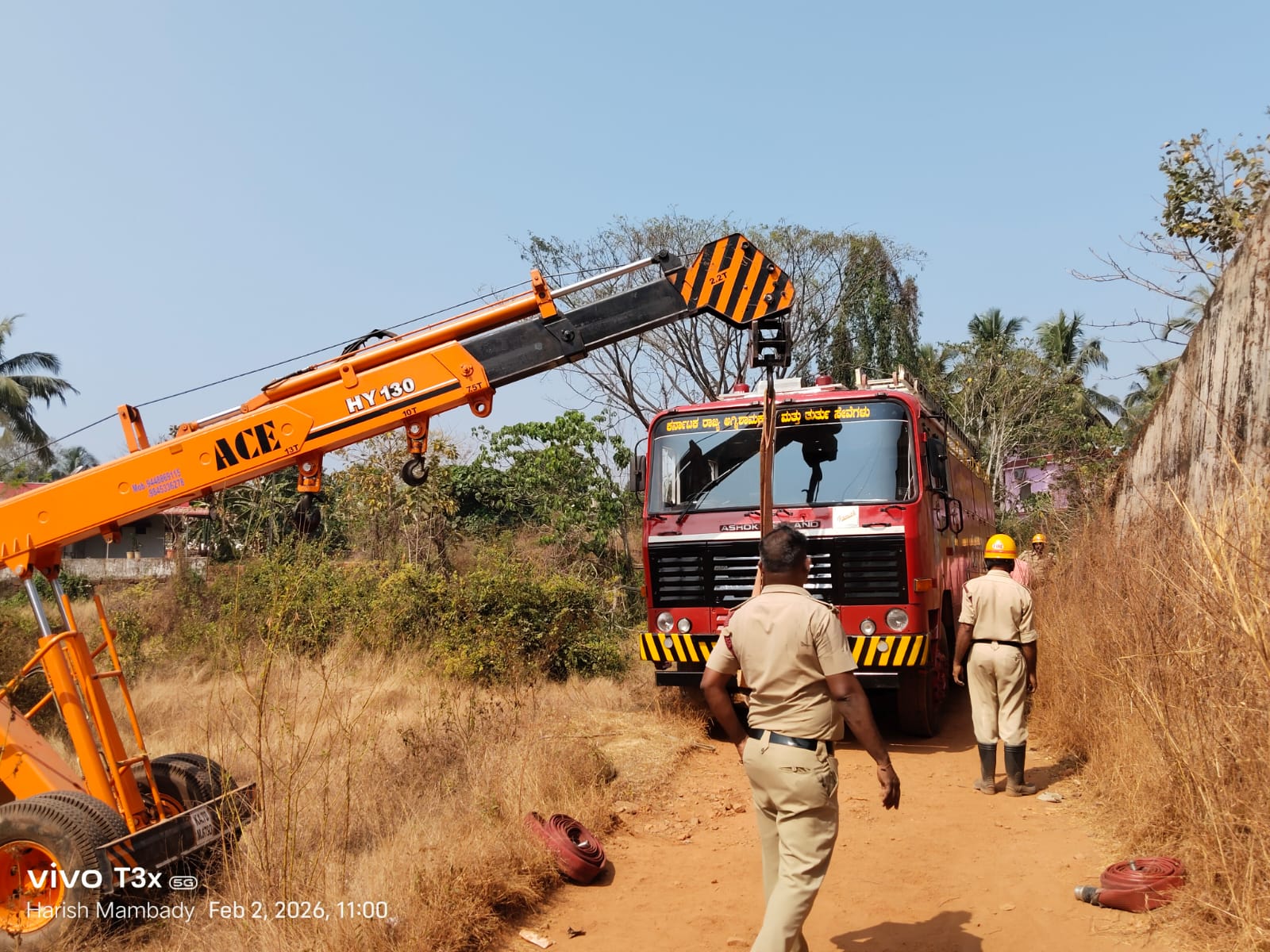 ಸೋಮವಾರ ಮನೆಯೊಂದರ ಬೆಂಕಿ ನಂದಿಸಲೆಂದು ಬಂದ ಅಗ್ನಿಶಾಮಕ ವಾಹನ ಕುಸಿದಿದೆ. ಇದರಿಂದ ಸಕಾಲದಲ್ಲಿ ತಲುಪಲು ಸಾಧ್ಯವಾಗಲಿಲ್ಲ.