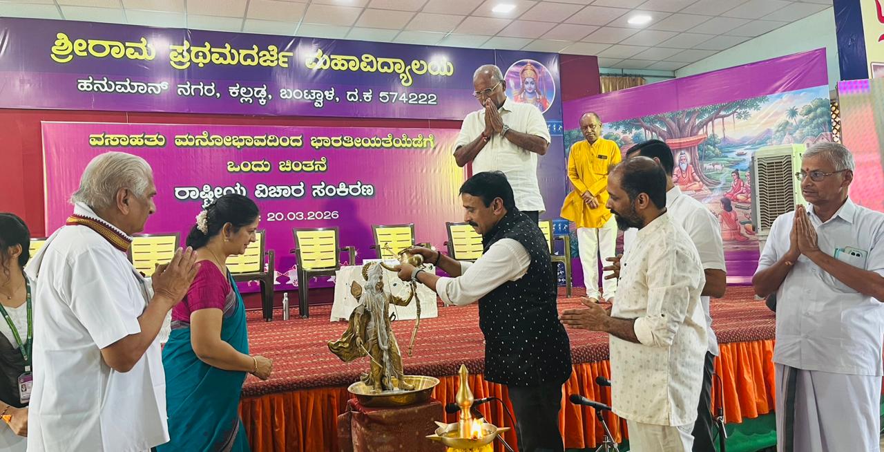 ಬಂಟ್ವಾಳ: ಕಲ್ಲಡ್ಕ ಶ್ರೀರಾಮ ಪ್ರಥಮ ದರ್ಜೆ ಮಹಾವಿದ್ಯಾಲಯದಲ್ಲಿ ಶುಕ್ರವಾರ ವಸಾಹತು ಮನೋಭಾವದಿಂದ ಭಾರತೀಯತೆಡೆಗೆ ಒಂದು ಚಿಂತನೆ ಎಂಬ ಕುರಿತು ಒಂದು ದಿನದ ರಾಷ್ಟ್ರೀಯ ವಿಚಾರಸಂಕಿರಣ ನಡೆಯಿತು.