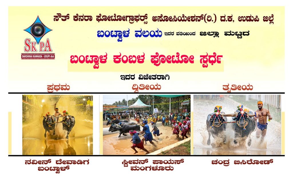 ಬಂಟ್ವಾಳ: ಸೌತ್ ಕೆನರಾ ಫೋಟೋ ಗ್ರಾಫರ್ಸ್ ಅಸೋಸಿಯೇಷನ್ ಬಂಟ್ವಾಳ ವತಿಯಿಂದ ಮುಡೂರು ಪಡೂರ್ ಕಂಬಳ ದ ಬಂಟ್ವಾಳ ಕಂಬಳ ಶೀರ್ಷಿಕೆಯಲ್ಲಿ ಜಿಲ್ಲಾ ಮಟ್ಟದ ಫೋಟೋ ಸ್ಪರ್ಧೆಯನ್ನು ಆಯೋಜಿಸಲಾಯಿತು,