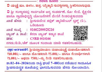 27ರಂದು ಪ್ರಾತಃಕಾಲ ಭಗವನ್ನಾಮಸಂಕೀರ್ತನೆ ಪ್ರಾರಂಭ, ಏ.2ರ ಪ್ರಾತಃಕಾಲ ಮಂಗಲ, ಮಹಾಮಂಗಲಾರತಿ. ಏ.2ರಂದು ಬೆಳಗ್ಗೆ ಶ್ರೀ ಗುರುದೇವಾನಂದ ಸ್ವಾಮಿಗಳವರ ದಿವ್ಯ ಮಾರ್ಗದರ್ಶನದಲ್ಲಿ ವೇ.ಮೂ.ಚಂದ್ರಶೇಖರ ಉಪಾಧ್ಯಾಯರ ಪೌರೋಹಿತ್ಯದಲ್ಲಿ ಶ್ರೀಮದ್ರಾಮಾಯಣ ಮಹಾಯಜ್ಞ ಆರಂಭ, ನಾಗದೇವರಿಗೆ ಪಂಚಾಮೃತ ಅಭಿಷೇಕ, ನಾಗತಂಬಿಲ, ಬೆಳಗ್ಗೆ 11.30ಕ್ಕೆ ಶ್ರೀ ಗುರುದೇವಾನಂದ ಸ್ವಾಮೀಜಿ ಅವರಿಂದ ಧರ್ಮಸಂದೇಶ. ಮಧ್ಯಾಹ್ನ 12ರಿಂದ ಮಹಾಯಜ್ಞದ ಪೂರ್ಣಾಹುತಿ, ಮಹಾಪೂಜೆ, ಪ್ರಸಾದ ವಿತರಣೆ, ಮಹಾಸಂತರ್ಪಣೆ ನಡೆಯಲಿದೆ. ಮಧ್ಯಾಹ್ನ 2.30ರಿಂದ ಸಾಂಸ್ಕೃತಿಕ ಕಾರ್ಯಕ್ರಮ, ರಾತ್ರಿ 7ರಿಂದ ಶ್ರೀ ಹನುಮದ್ವ್ರತ ಪೂಜೆ, ವಿಶೇಷ ಬೆಳ್ಳಿ ರಥೋತ್ಸವ ಉಯ್ಯಾಲೆ ಸೇವೆ ನಡೆಯಲಿದೆ ಎಂದು ಶ್ರೀ ಕ್ಷೇತ್ರದ ಪ್ರಕಟಣೆ ತಿಳಿಸಿದೆ.