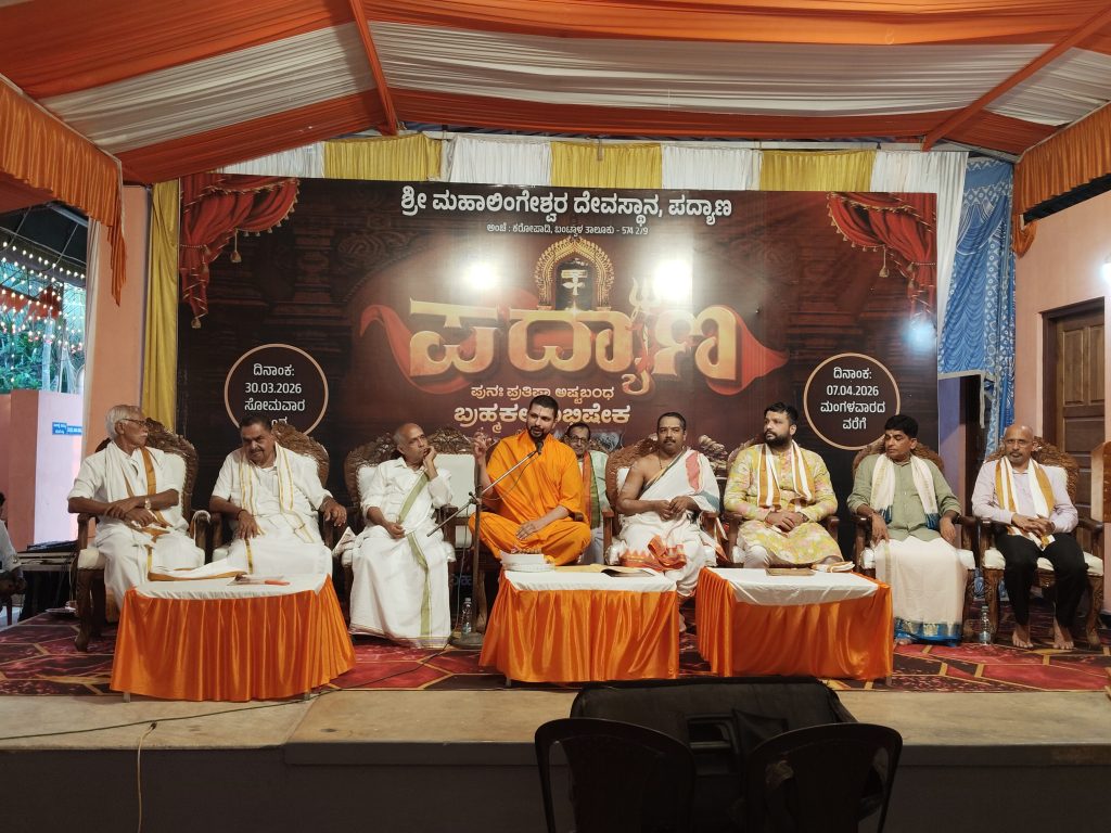 ಪದ್ಯಾಣ ಶ್ರೀ ಮಹಾಲಿಂಗೇಶ್ವರ ದೇವಸ್ಥಾನದ ಬ್ರಹ್ಮಕಲಶೋತ್ಸವ ಕಾರ್ಯಕ್ರಮ ಹಿನ್ನೆಲೆ ಗುರುವಾರ ಸುಧರ್ಮ ಸಭೆ ಗುರುವಾರ ನಡೆಯಿತು.