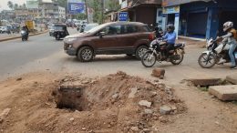 ಬಿ.ಸಿ.ರೋಡ್ ನ ಅಜ್ಜಿಬೆಟ್ಟು ಕ್ರಾಸ್ ಬಳಿ ಎಚ್ಚರ!!! ರಸ್ತೆ ಪಕ್ಕ ಬಾಯ್ದೆರೆದಿದೆ ಹೊಂಡ!!