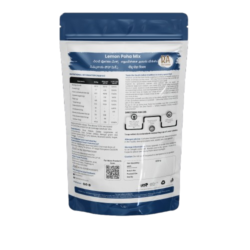 Key Features: 1. Instant & Convenient: Ready in just 3–5 minutes – just add hot water. 2. Tangy & Flavorful: Traditional lemon seasoning with a hint of spice. 3. Crunchy Texture: Roasted peanuts and mild tempering add a satisfying bite. 4. Travel & Office Friendly: Comes in a lightweight, mess-free pack. 5. Wholesome Snack or Meal: Ideal for breakfast, mid-day hunger, or light dinner.