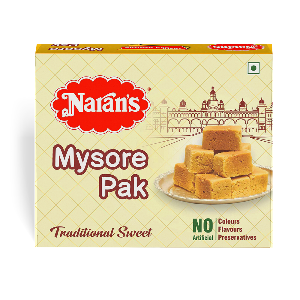 Mysore Pak Posted By: December 30, 2025 ₹152.38 Ships by Thursday, 1 Jan 202699 in stock Mysore Pak quantity Add to cart SKU: decb8c95-9471-4e38-a611-a46e65ad3d99 Category: Indian Sweets Description Description Golden, ghee-rich, crumbly texture and taste—Mysore Pak is royalty in every bite. Related products Aam Boss Mango Bar (200g) Amba Poli Khatta Meetha Aam Papad| Aam Papad| Mango Jelly ₹190.00 Add to cart Naran’s Wheat Halwa ₹152.38 Add to cart Dates Halwa ₹152.38 Add to cart Banana Halwa ₹152.38 Add to cart