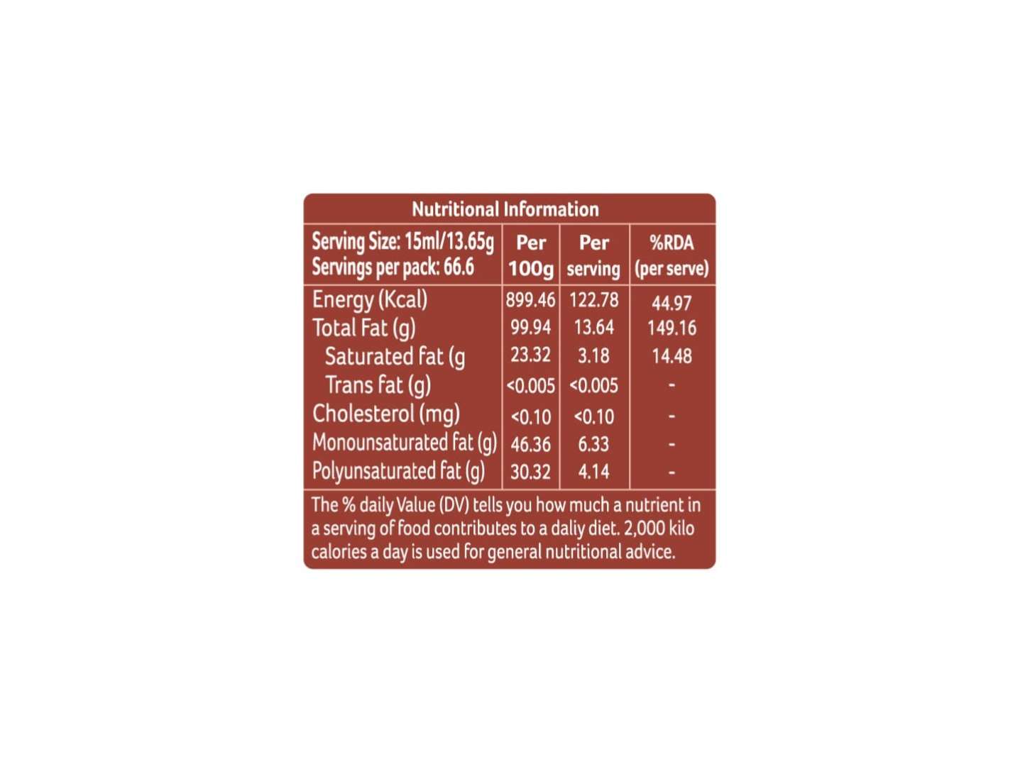 Organic Tattva’s Organic pressed groundnut oil is deep yellow with pleasant nutty aroma and flavourful taste with high energy. This oil has a high smoke point which makes this oil suitable for deep-frying food items. Peanut oil is low in saturated fats, free from cholesterol, contains essential fatty acid (linoleic acid (omega 6)) making it as one of the healthiest cooking oils.
