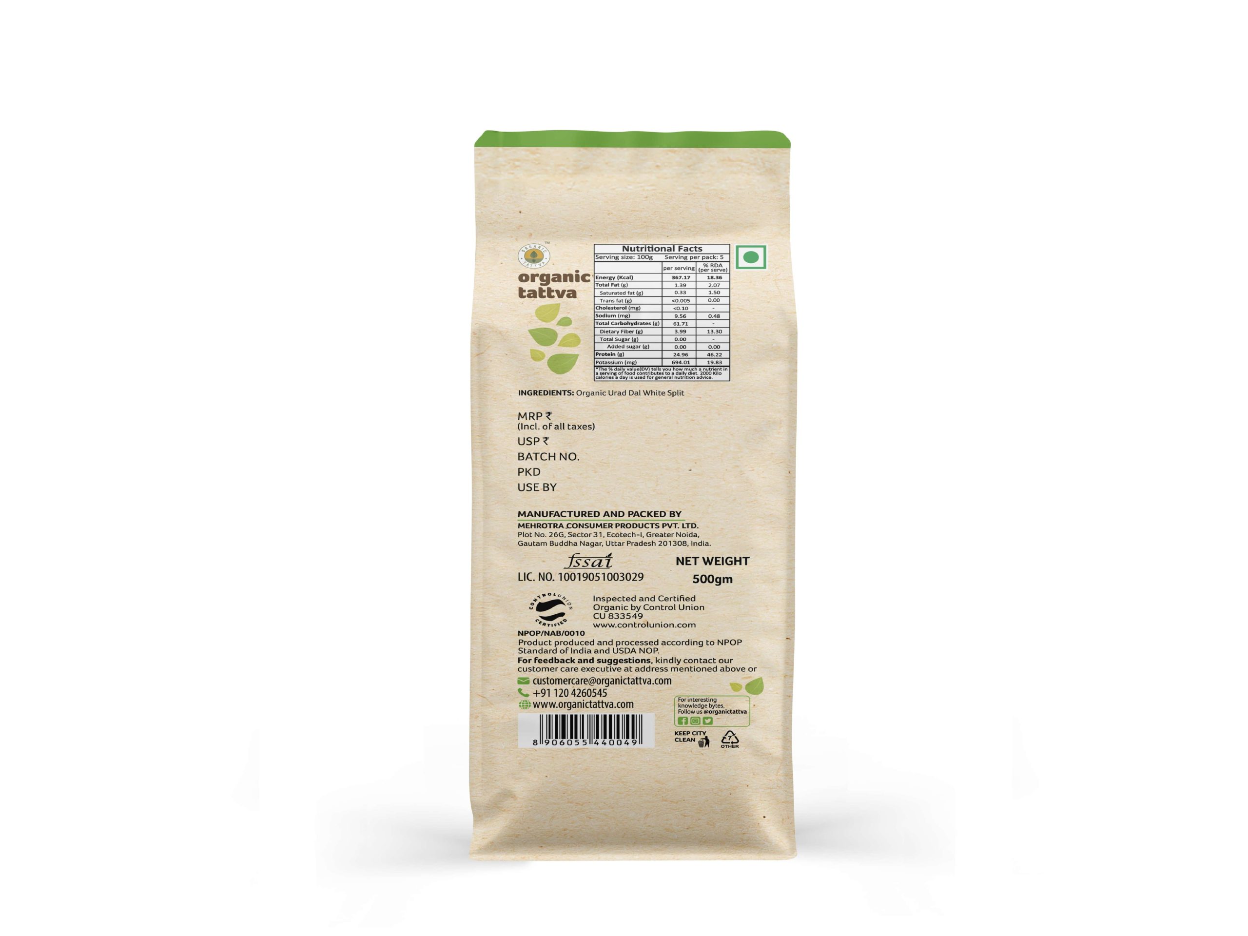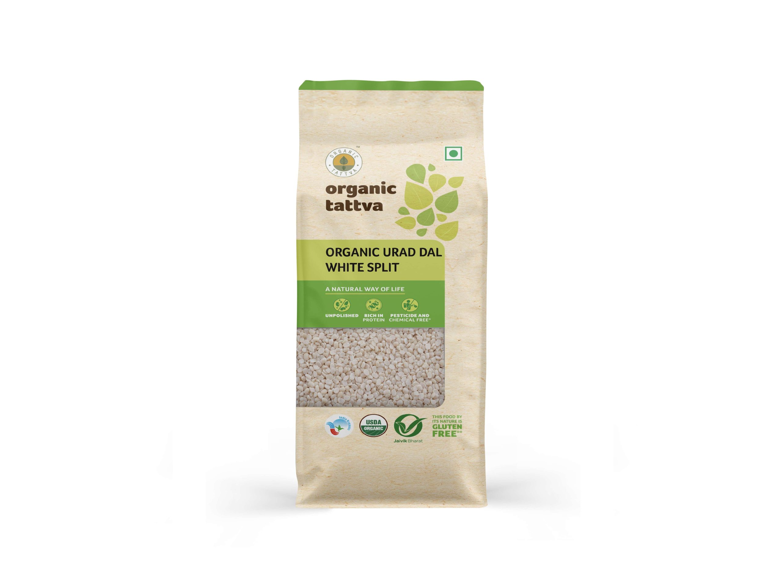 Organic Tattva’s Organic Urad Dal White Split is organic certified, Vegan, Gluten free, unpolished and loaded with daily essential nutrients, like iron, calcium and protein. Along with these nutrients, a bowl of Organic Urad White dal also contains dietary fibres, sodium and all the other nutrients that are required for your body. Urad Dal split White retains the original texture of dal and is free from pesticides and additives. It is the richest source of Vitamin B and proteins. A 100g serving of Organic Urad Dal Whole White contains 0g trans-fat and 0mg cholesterol. The calorie count per serving of Organic Urad Dal is 304.76. If leading a healthy life is your mantra, then switch to Organic Urad White Split unpolished dal by Organic Tattva today!
