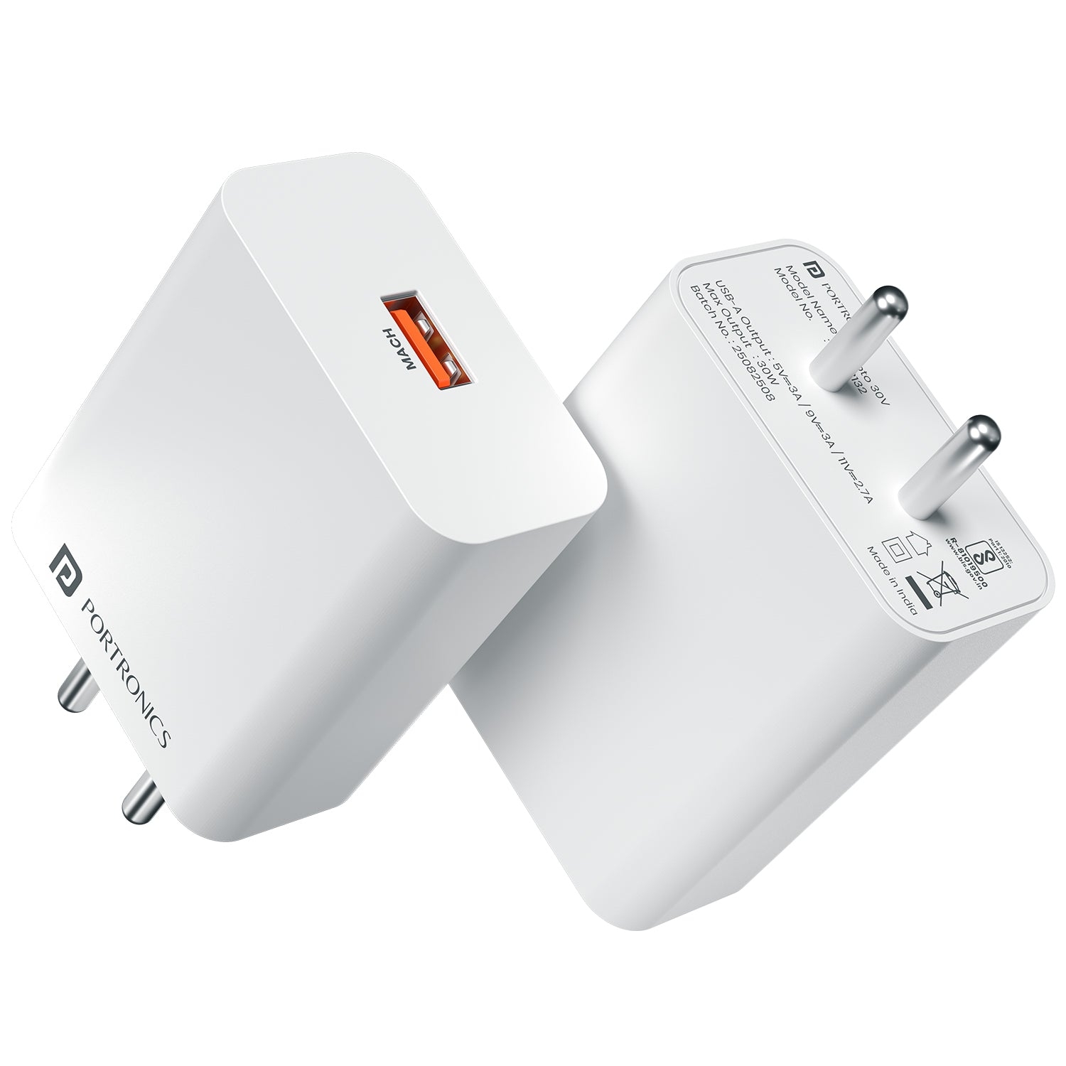 30W FAST CHARGING (USB-A): Adapto 30V delivers up to 30W from its USB-A port for rapid top-ups of phones, earbuds, power banks and more. MACH CHARGE® STABILITY: Optimised power delivery for consistent, efficient charging without heating or drop-offs. INTELLIGENT SAFETY CHIP: Multi-protect (over-voltage, over-current, short-circuit & temperature control) keeps your devices safe. FLAME-RETARDANT BODY: Sturdy, heat-resistant housing built for daily use and safer charging at home or on the go. 6A TYPE-C CABLE INCLUDED: Box includes a 1-metre USB-A to Type-C 6A high-speed cable—use it for the best performance. WIDE COMPATIBILITY: Works with OnePlus, OPPO, realme, vivo and more; supports fast-charge standards like SuperVOOC/WARP/Dash/Flash/Turbo/Quick on compatible models. COMPACT & TRAVEL-READY: Lightweight design, easy to carry; ideal as a primary or backup fast charger. 6 Months Warranty Importer/Manufacturer/Packer : Portronics Digital Private Limited, Ground Floor and First Floor, Property No. D 8 Upper Basement, Sector 8, Noida, Gautam Buddha Nagar, Uttar Pradesh, 201301