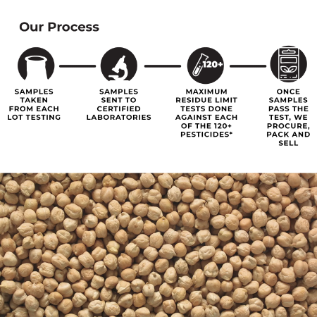 Safe Harvest Kabuli Chana is 100% Chemical-Free and sourced from tribal farmers in Madhya Pradesh. Rich in protein, fibre and vitamins, it is a great plant-based protein source for vegans.
