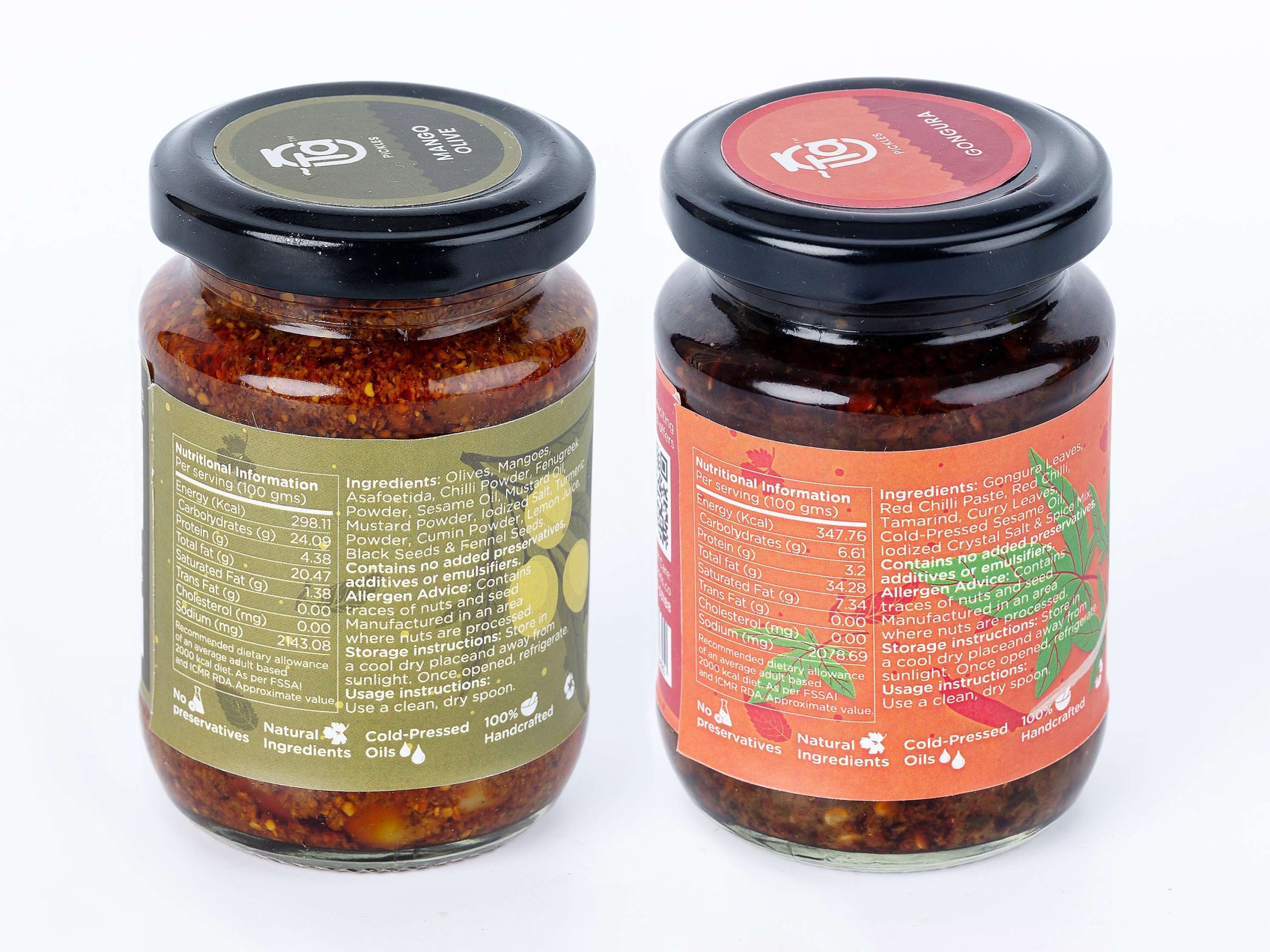 Combo of 2 150 g Ta pickles made with 100% cold pressed oils and free from preservatives.